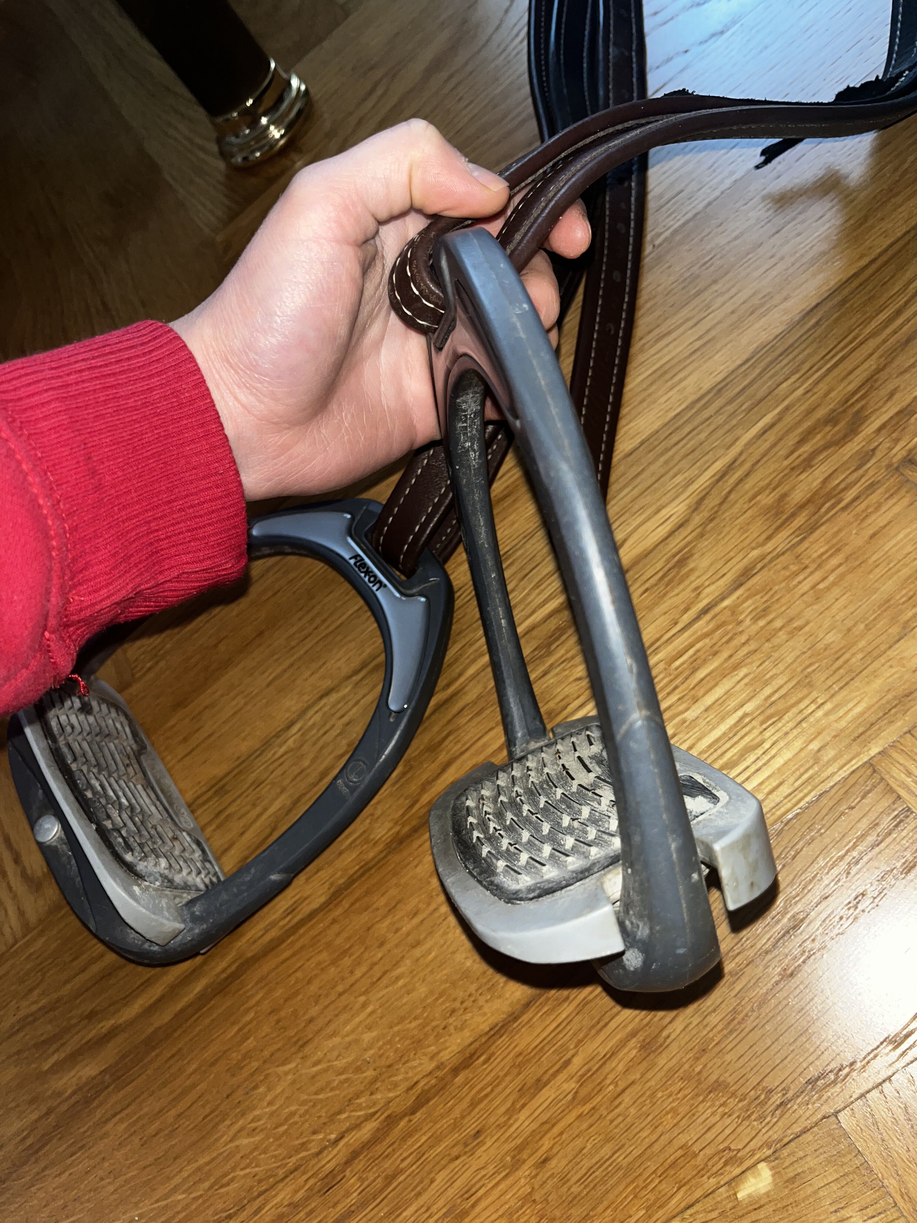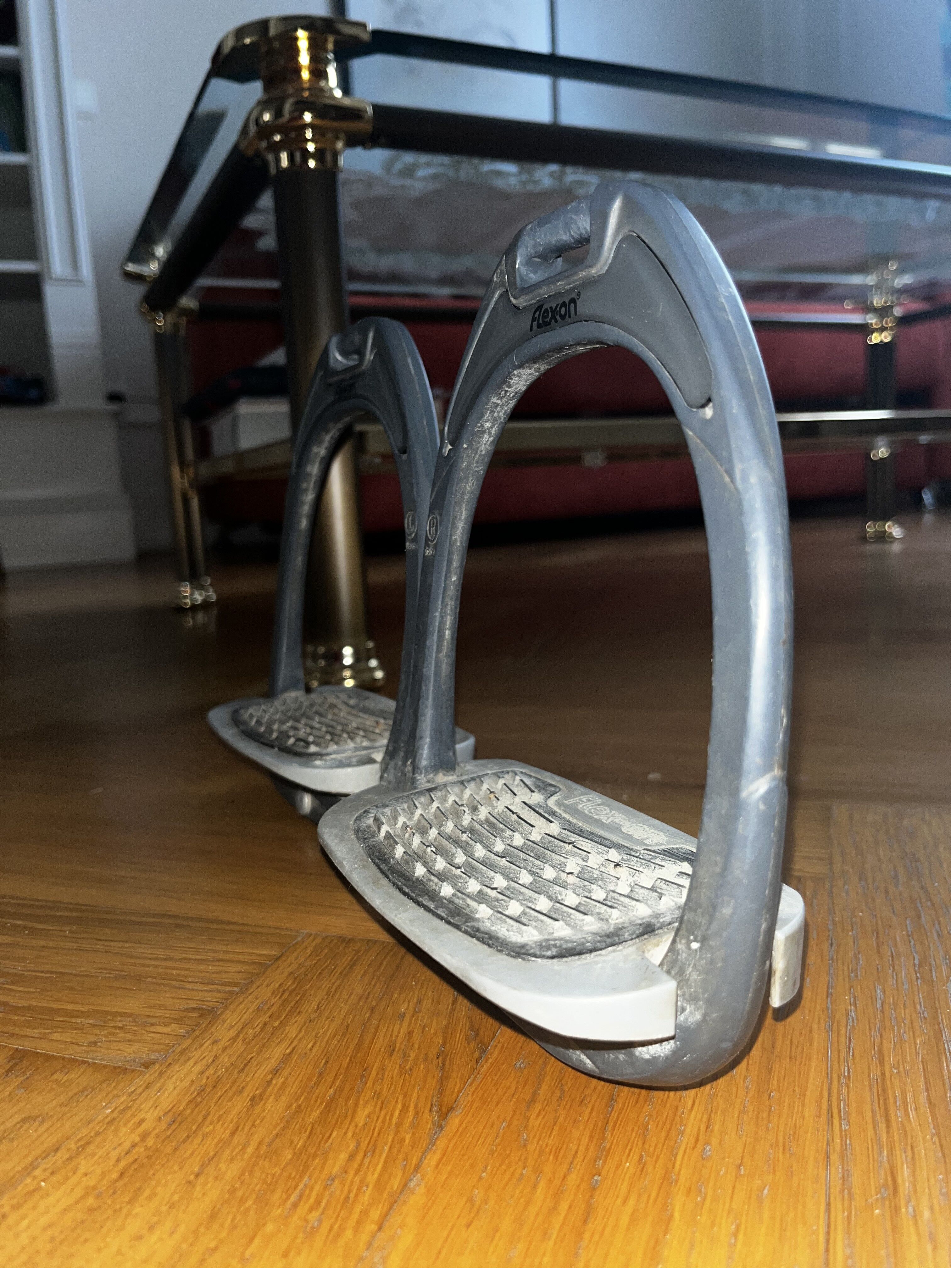 Etriers Flex-On gris foncés avec amortisseurs gris clairs.