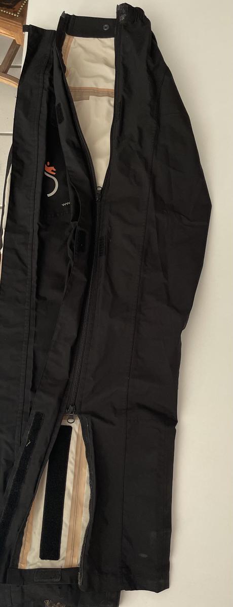 Sur-pantalon imperméable pratique pour les concours taille S s'ouvre le long des jambes avec des fermetures éclairs et des scratchs