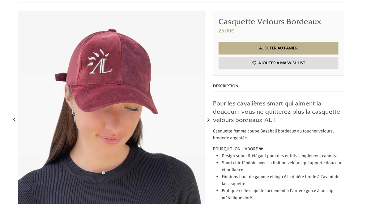 casquette femme, coupe baseball, de la marque Alexandra Ledermann en velours rouge bordeaux (doux au toucher)