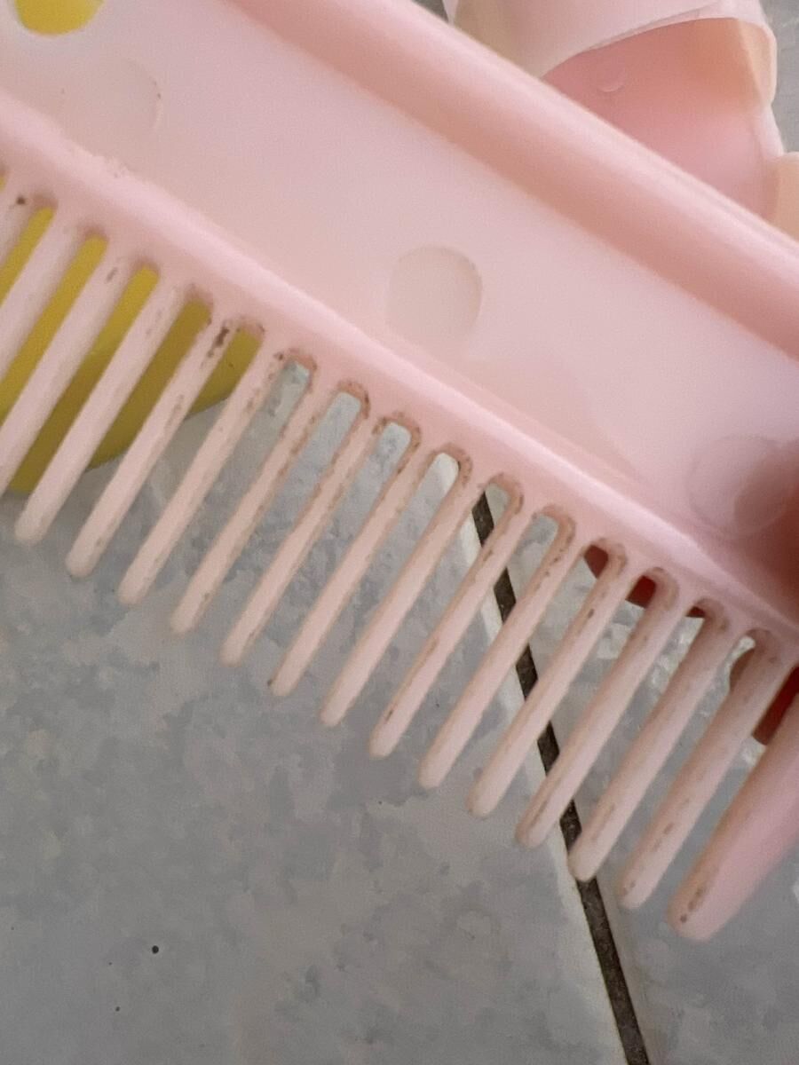 ensemble de brosse qui contient : une petit éponge pour la douche, (Poney ou Shetland,)une étrille et un peigne