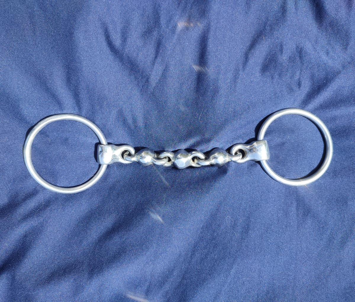 Vends un mors à boules en inox en taille 125 mm. Très peu utilisé. Très bon état.