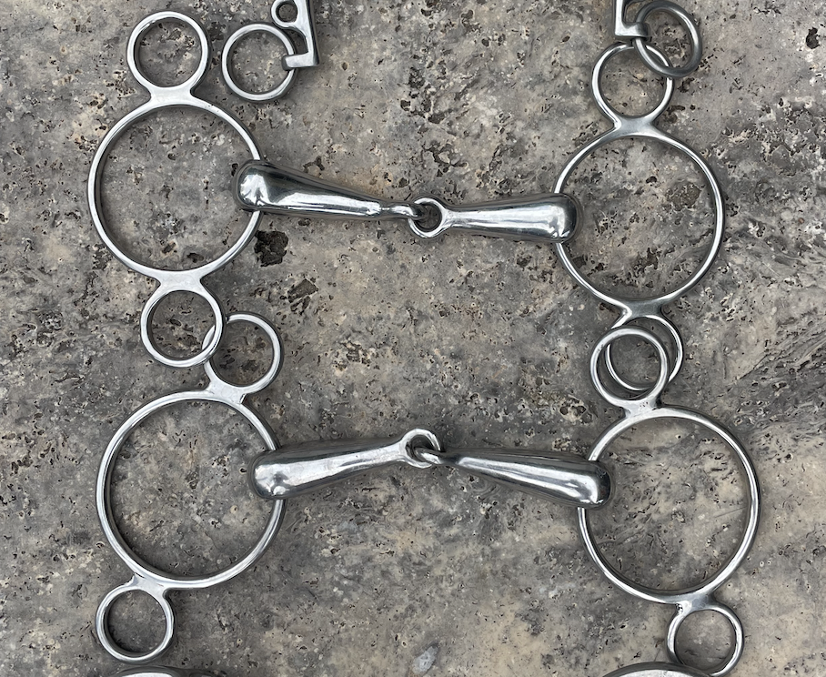 Différents mors ; pelham en cahoutchou, pessoa et releveur. Taille 115mm sauf un des pessoas 105mm