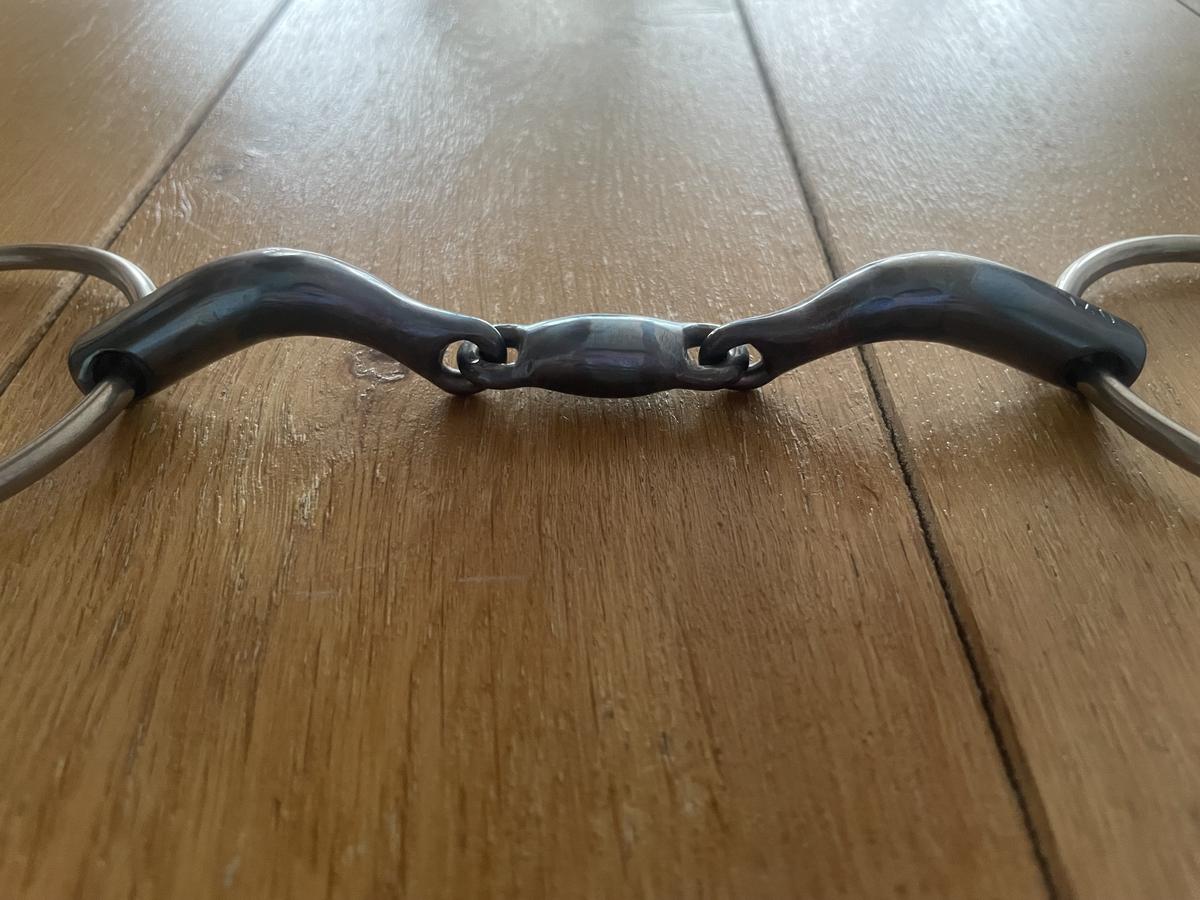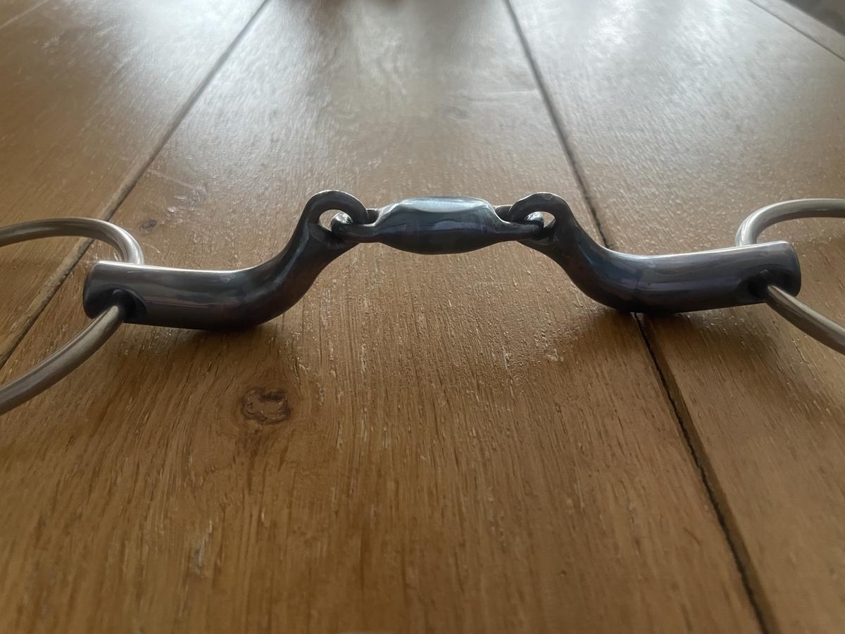 Le mors Ellitical dressage répartit la pression sur la langue. Les embouts buccaux sont courbés pour adoucir la pression de la barre. Les embouts buccaux et le losange sont rectifiés à plat pour répartir la pression uniformément sur la langue et les barres, ce qui, avec les maillons décalés, réduit encore les points de pression.