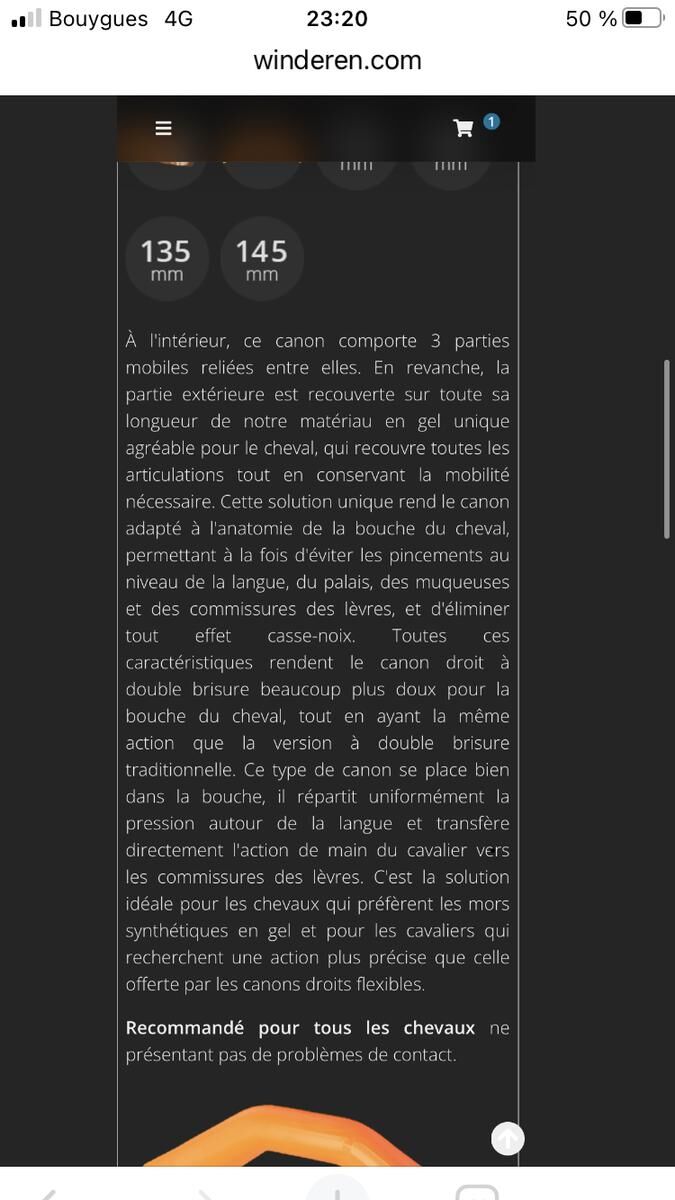 Canon pour mors Winderen - Droit à double brisure 135 mm - White Edition - Comfort