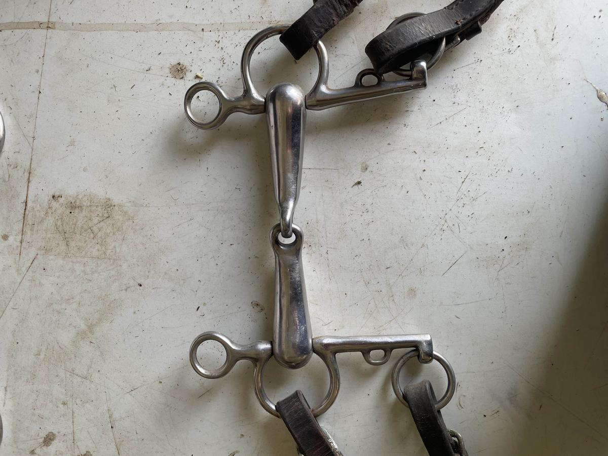 Mors Pelham, peuvent être vendues avec des alliances et une gourmette si besoin, taille 135mm, très bon état, 1 brisure, en acier inoxydable (inox) Secteur St malo (si souhait de remise en main propre) À vendre 18€ - 25€ si alliances havanes + gourmette
