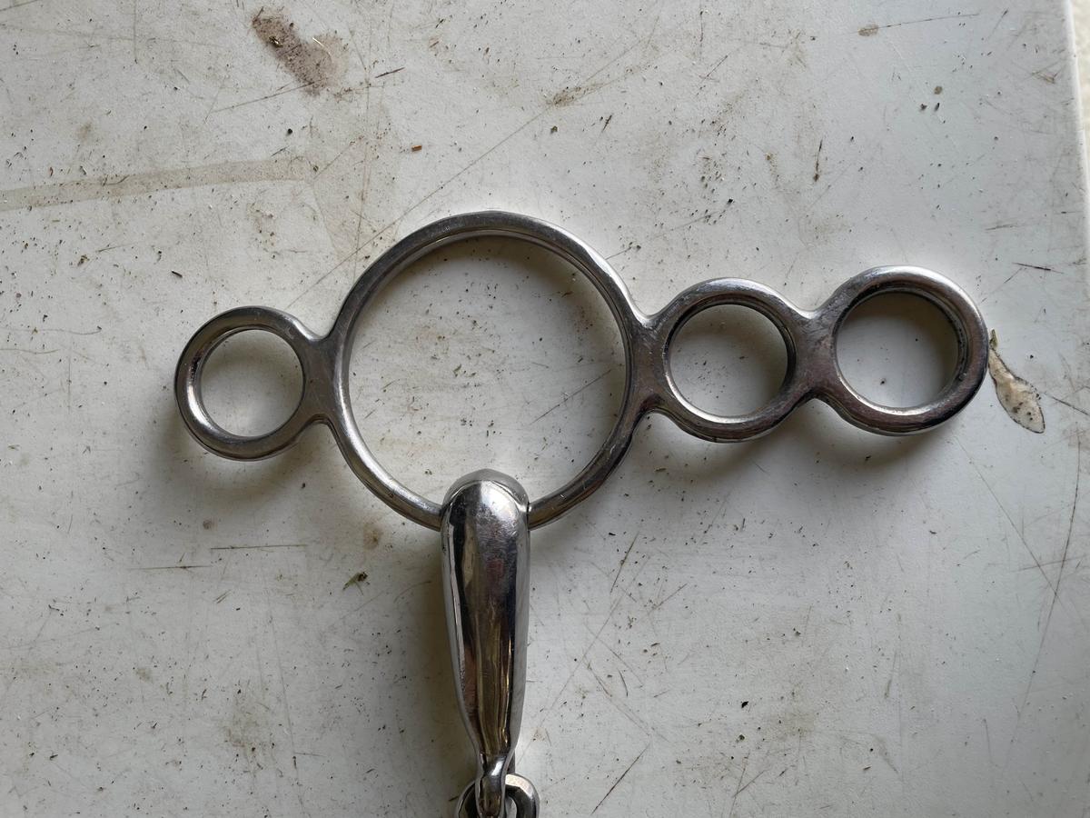 Mors Pessoa (4 boucles), taille 115mm, mis seulement 2/3 fois, aucun défaut, peut être vendu avec des alliances en cuirs noires, en acier inoxydable (inox), acheté sur Padd (marque Feeling je crois)
