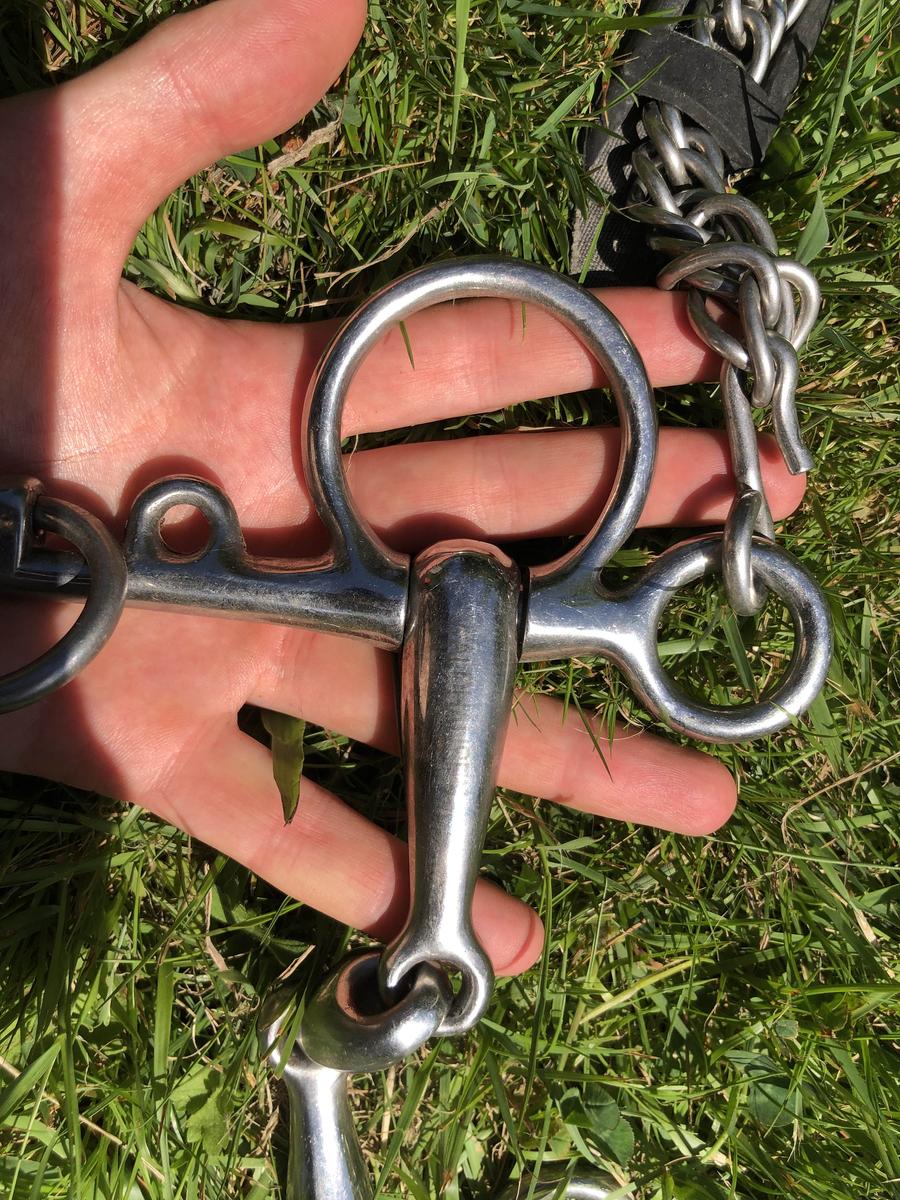 vend mors Pelham double brisure avec sa gourmette protection taille 12,5 cm bon état peut utilisé Valeur neuve = 44 euros + 10 euros pour la protection de gourmette prix négociable