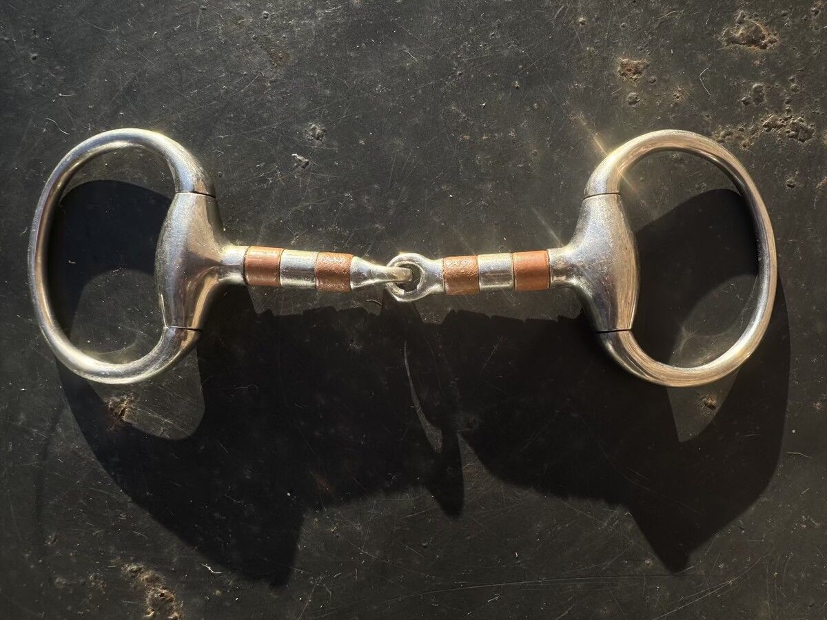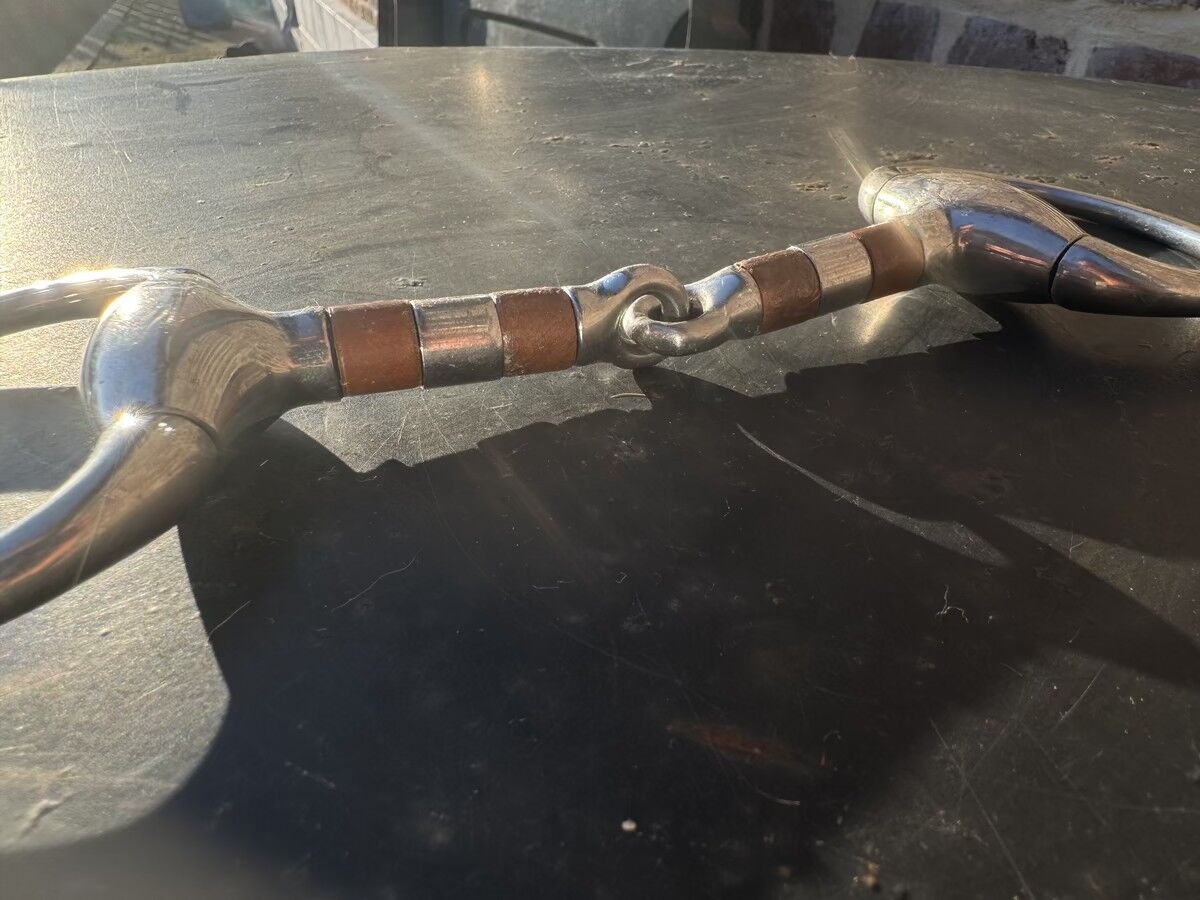 Lot de deux mors simples Inox avec petits "jouets" en cuivres taille 115 simple brisures anneaux fixes