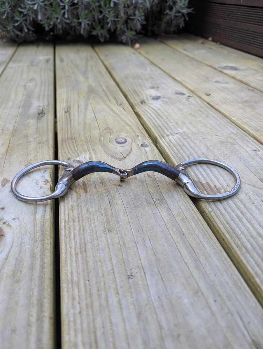 Alliage en Sweet iron qui s'oxyde au contact de l'humidité de la bouche et de l'air et apporte jun goût sucré qui stimule naturellement la production de salive. L'oxydation modifie l'aspect du mors au fur et à mesure des séances.