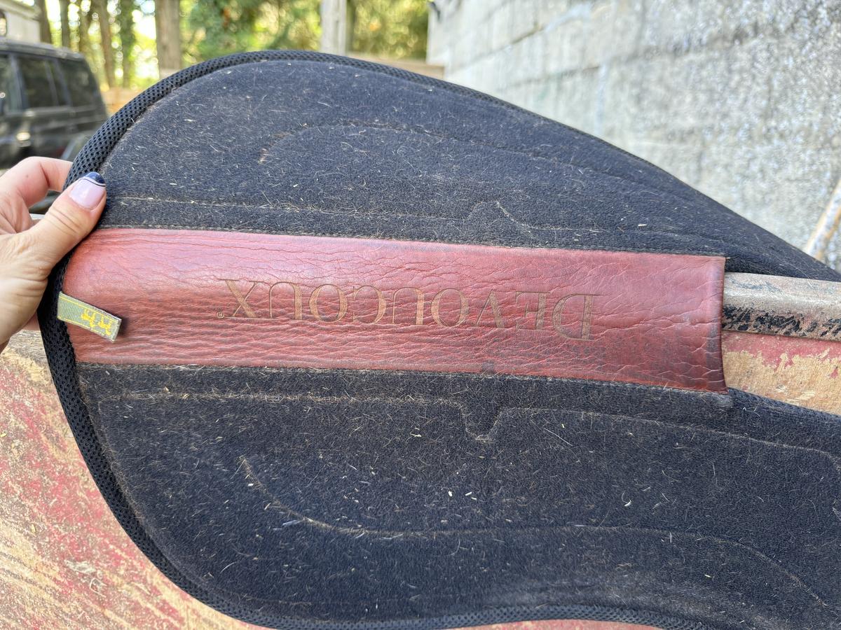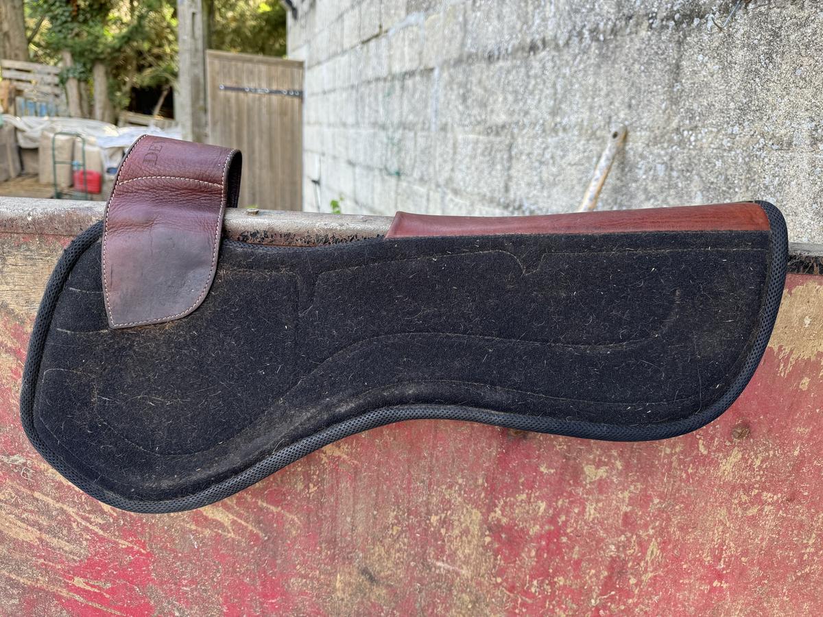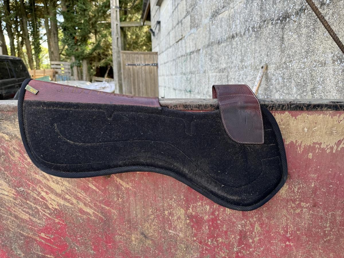 Amortisseur devoucoux avec cale pour adapter au mieux à la morphologie de votre cheval. La pièce de cuir au garrot et amovible pour également le régler correctement.