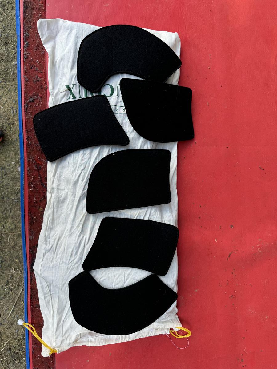Amortisseur devoucoux avec cale pour adapter au mieux à la morphologie de votre cheval. La pièce de cuir au garrot et amovible pour également le régler correctement.
