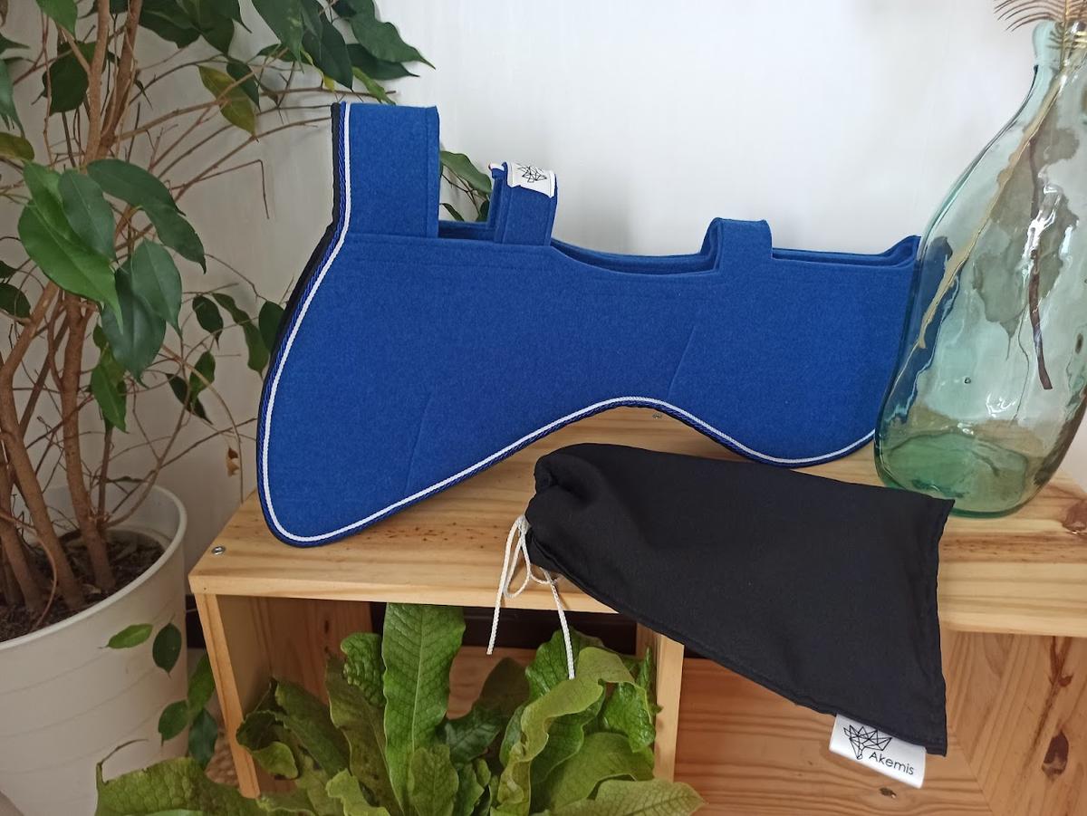 Compensateur en feutre, taille cheval, marque Akemis, neuf, avec cales avant, centre et arrière. Bleu roi.