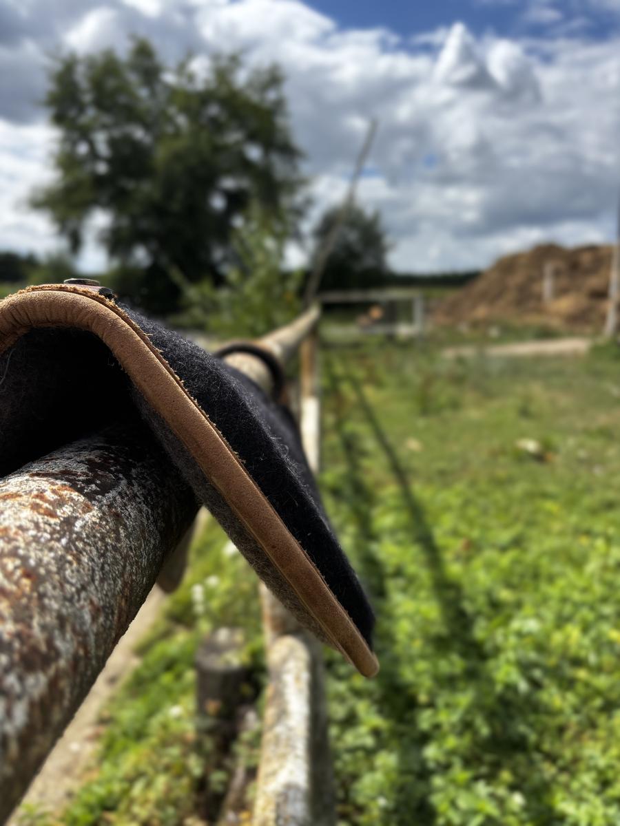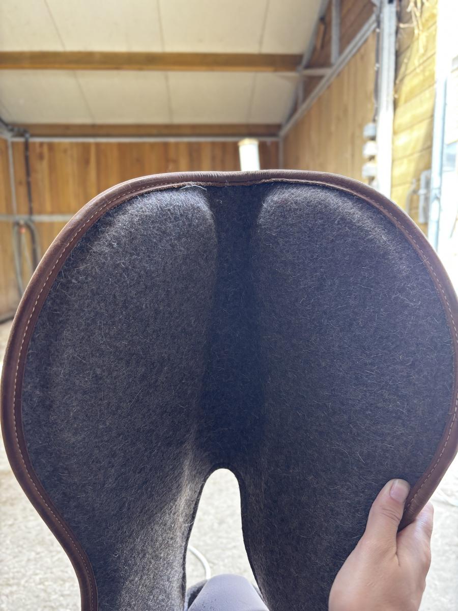Je vends un amortisseur en feutre de la marque Bruno Delgrange. Il est noir avec des contours en cuir et un dessous gris. Il a la particularité d’avoir des cales arrières. Il a été utilisé à peine une dizaine de fois. Cause de la vente : changement de selle. Prix neuf : 305€