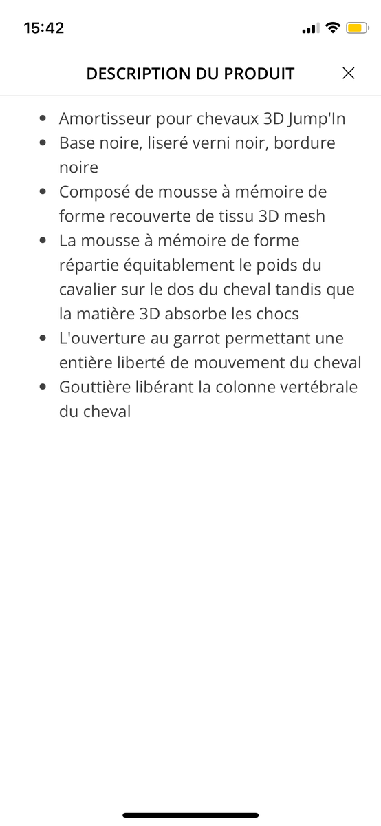 porter une seule fois pour essai mais ne me convient pas