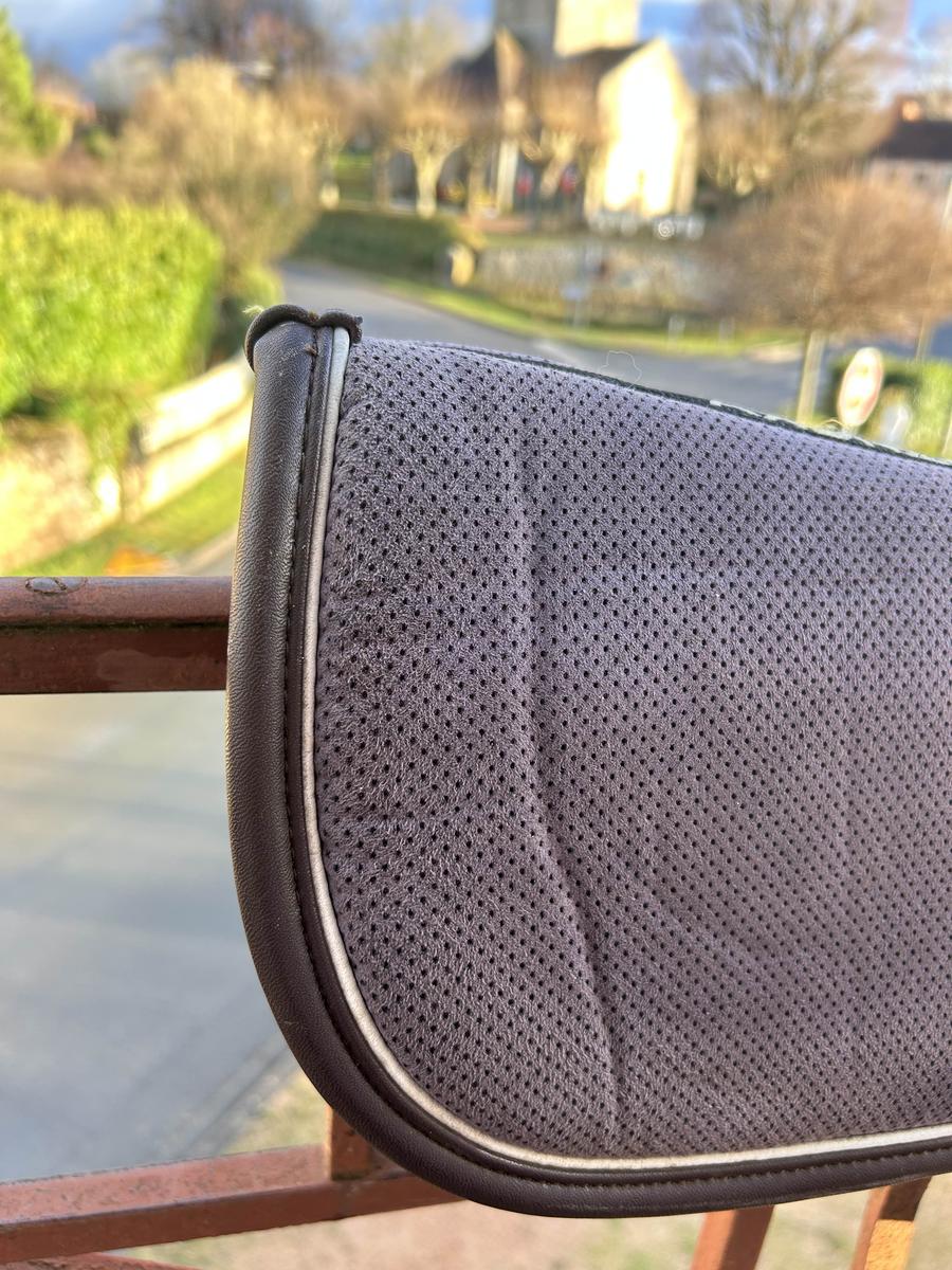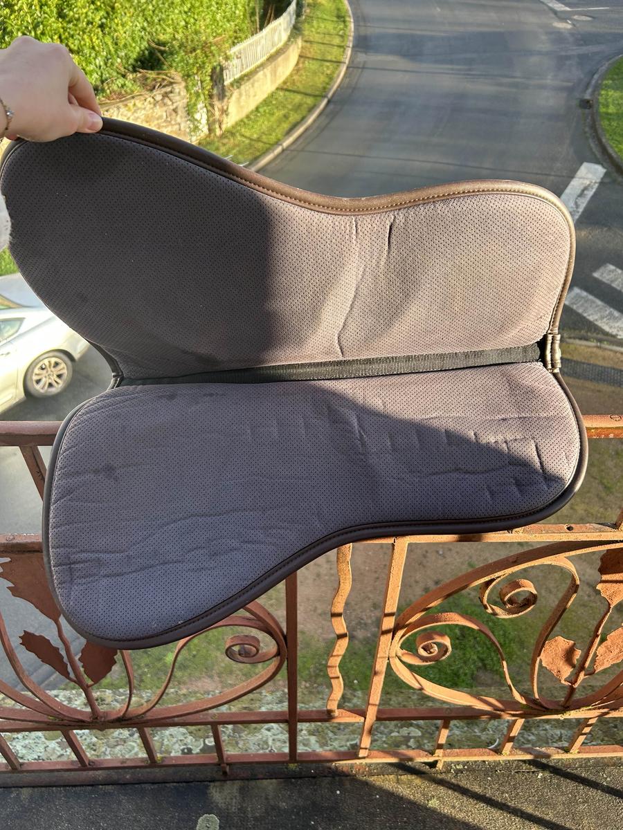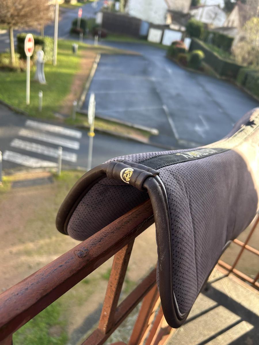 forme anatomique qui améliore le contact entre le cavalier et le cheval, tout en offrant une protection exceptionnelle au dos du cheval. Grâce à son système à 5 couches, l’amortisseur absorbe les chocs et minimalise la pression de la selle et du cavalier. L’amortisseur absorb anatomique se compose d’un tissu absorbant, d’une mousse mémoire de forme, d’un gel absorbant les chocs, d’une seconde mousse de mémoire de forme et d’un second tissu absorbant. Le tissu extérieur en microfibres avec des trous de ventilation permet un séchage rapide et un maintien parfait. L’épaisseur réduite de cet amortisseur offre une liberté maximale, une bonne stabilité, réduit les douleurs du dos tout en offrant plus de confort pour le cheval et le cavalier. La forme anatomique assure la liberté du garrot et de la colonne. Utilisé pendant un an mais en superbe état Taille cheval