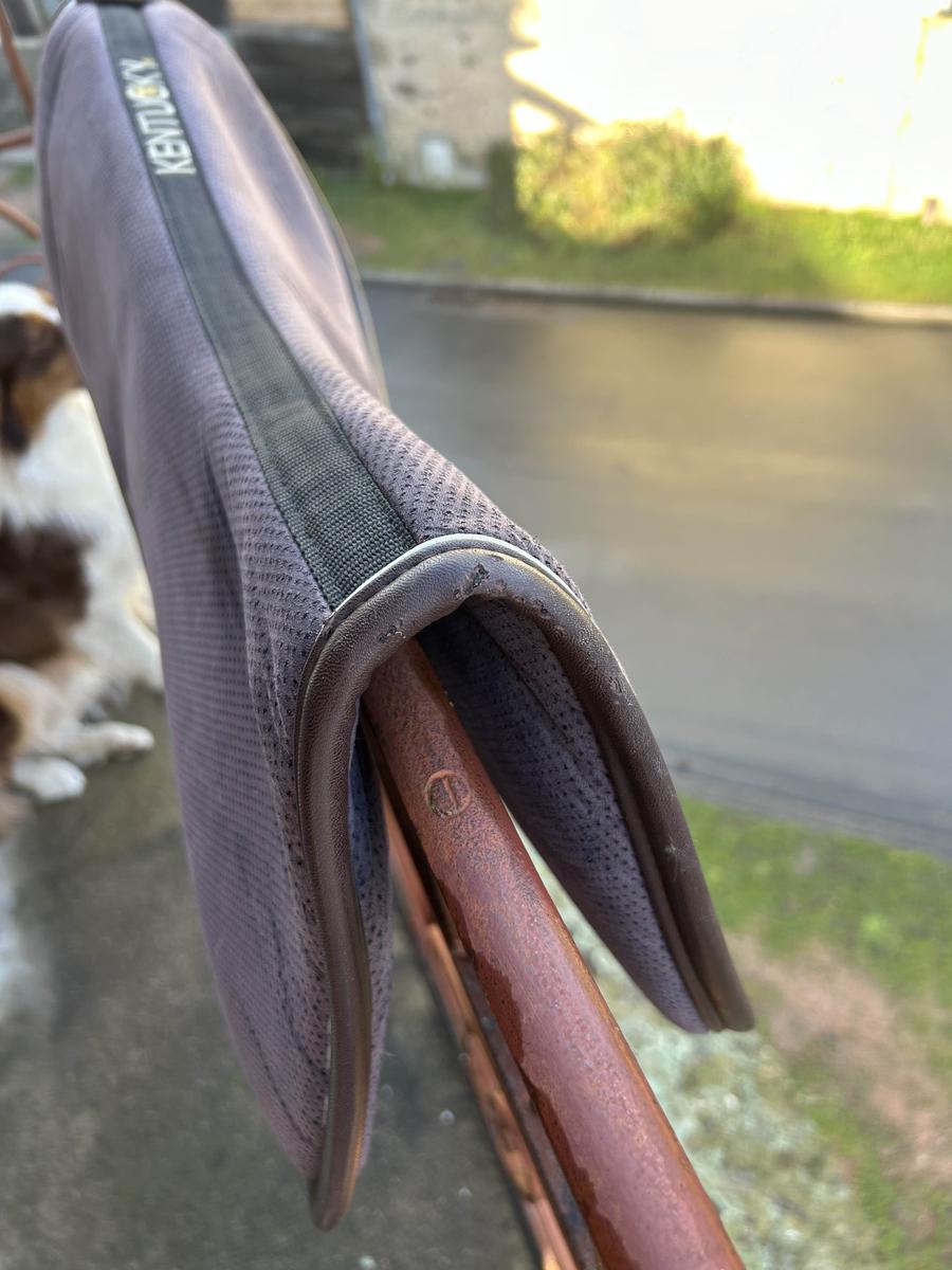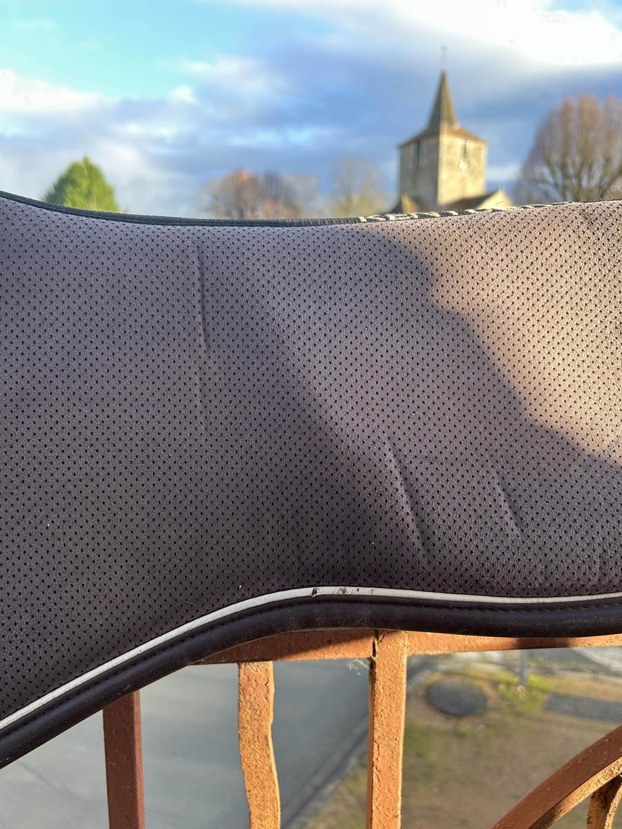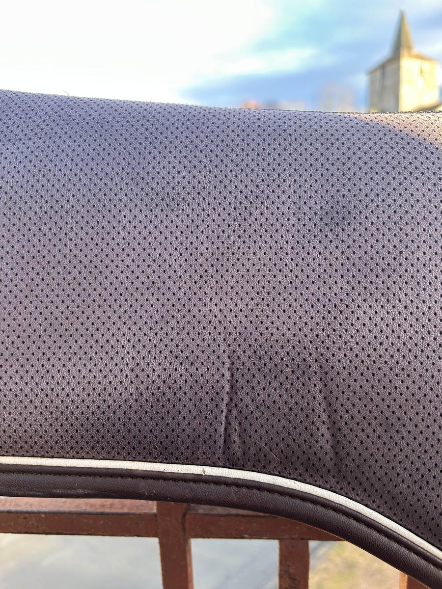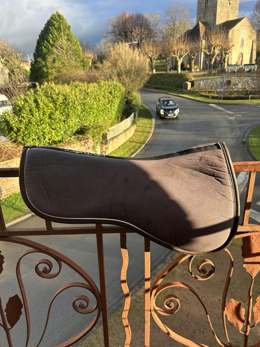 forme anatomique qui améliore le contact entre le cavalier et le cheval, tout en offrant une protection exceptionnelle au dos du cheval. Grâce à son système à 5 couches, l’amortisseur absorbe les chocs et minimalise la pression de la selle et du cavalier. L’amortisseur absorb anatomique se compose d’un tissu absorbant, d’une mousse mémoire de forme, d’un gel absorbant les chocs, d’une seconde mousse de mémoire de forme et d’un second tissu absorbant. Le tissu extérieur en microfibres avec des trous de ventilation permet un séchage rapide et un maintien parfait. L’épaisseur réduite de cet amortisseur offre une liberté maximale, une bonne stabilité, réduit les douleurs du dos tout en offrant plus de confort pour le cheval et le cavalier. La forme anatomique assure la liberté du garrot et de la colonne. Utilisé pendant un an mais en superbe état Taille cheval