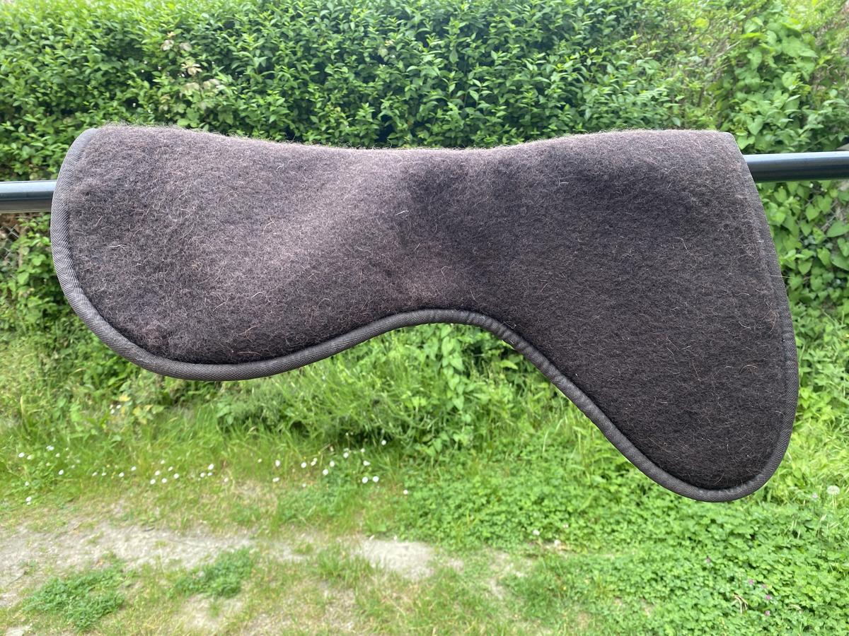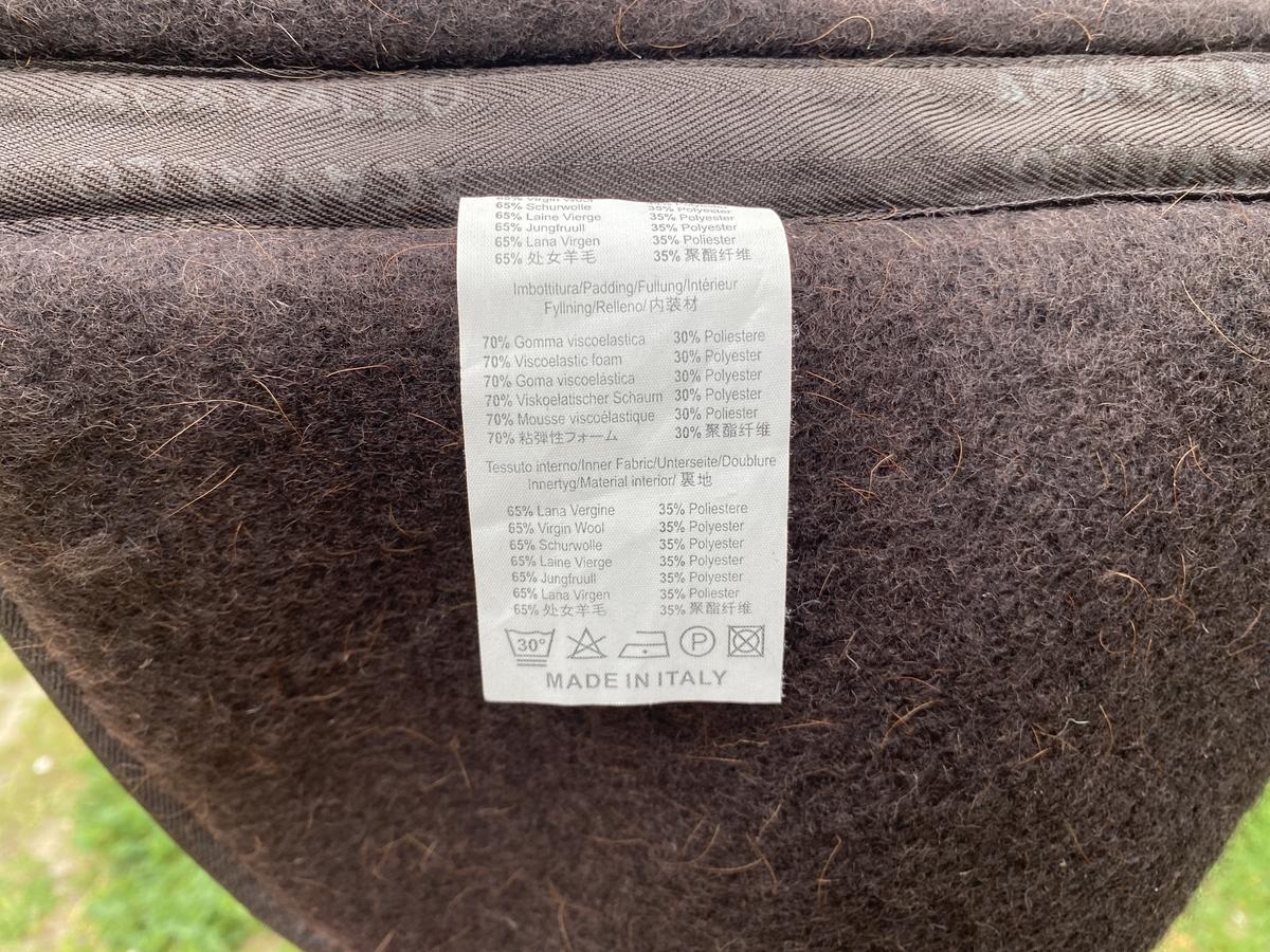 Amortisseur en mousse à mémoire de forme, avec garrot et dos classiques, doublé de pure laine. Forme anatomique et résistante aux chocs.