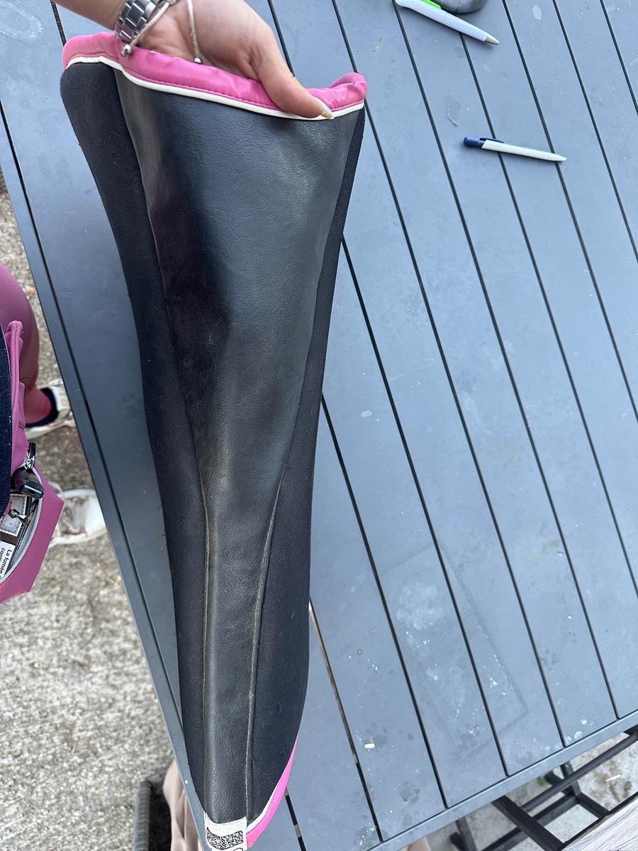 Amortisseur GEM, personnalisée, noir avec un liseré blanc et rose. Taille cheval en excellent état.
