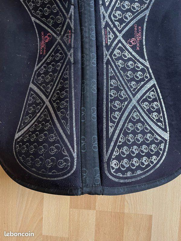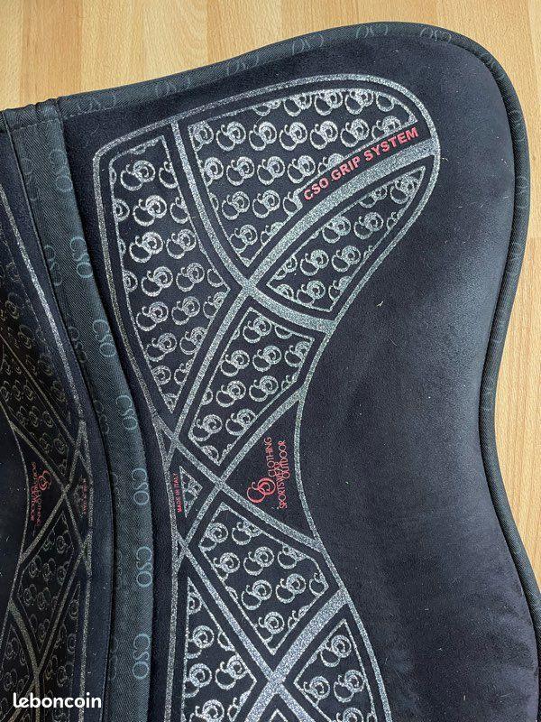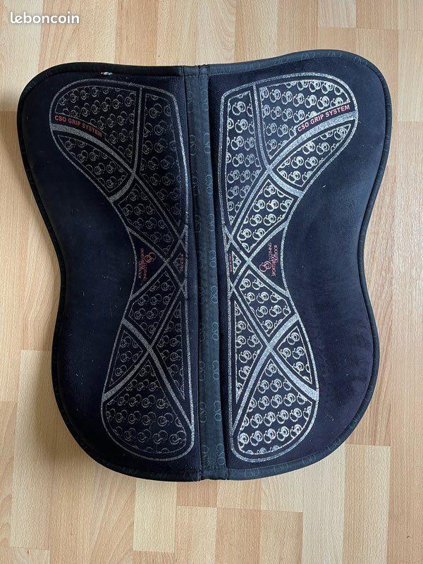 Amortisseur respirant à mémoire de forme micro/mousse, marque cso, avec grip system et revetement spécial réalisé dans un matériau très résistant et adhérant qui apporte une parfaite stabilité à la selle, il s'adapte donc parfaitement à toutes les conformités de dos. Porté deux fois, comme neuf, acheté 140€.