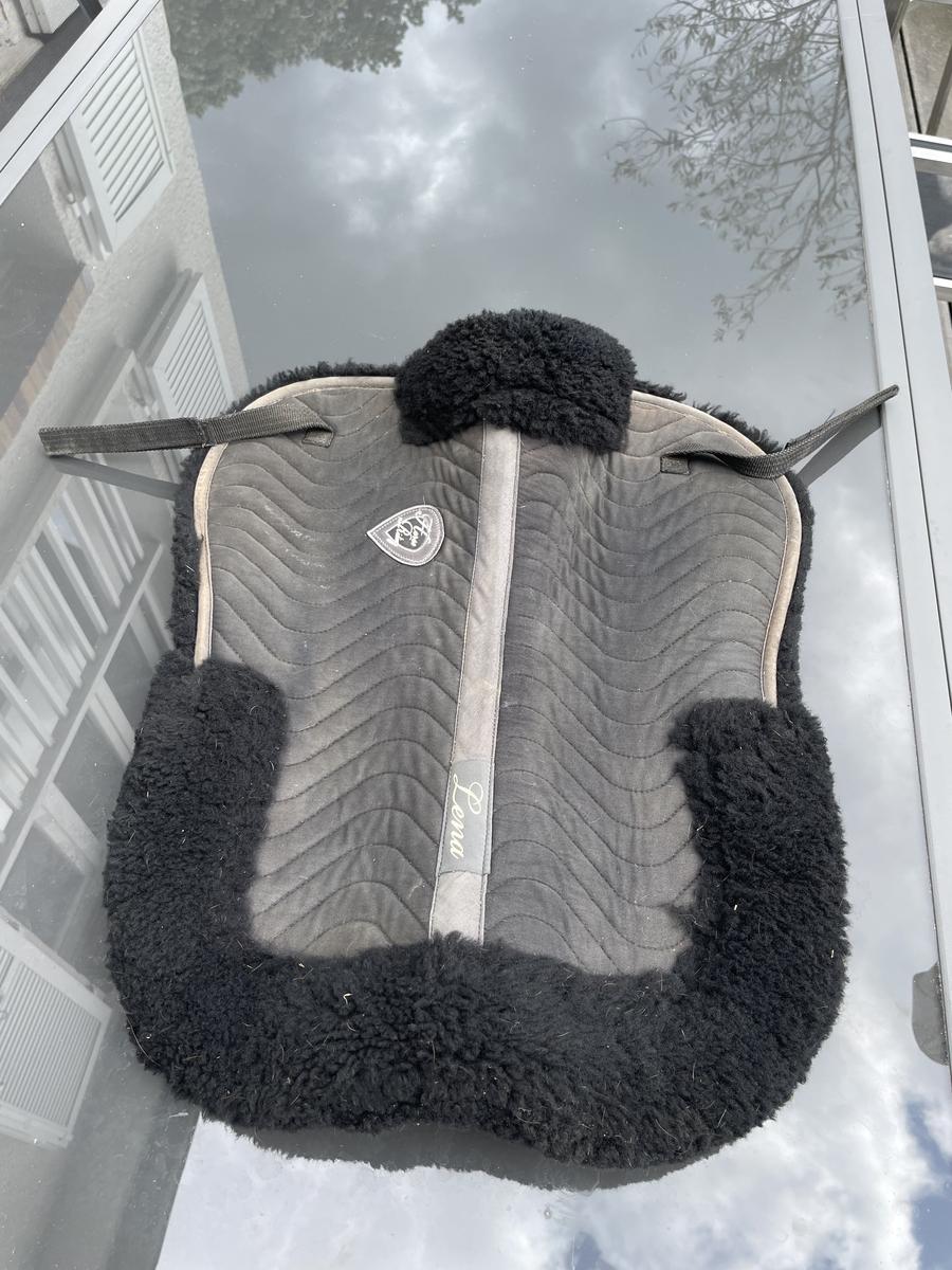 Amortisseur noir en mouton de la marque Lena. Sera lavé si vous le souhaitez avant l’envoi.