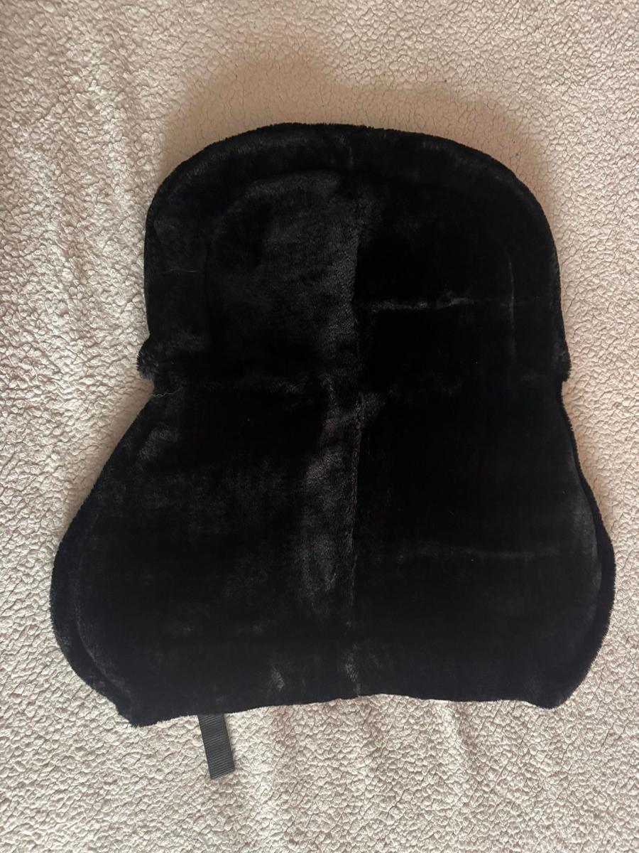 Amortisseur en fausse fourrure de couleur noir. Jamais utilisé. Propre et pas abîmé. Taille Cheval. Marque Kramer.