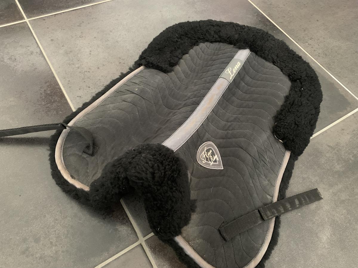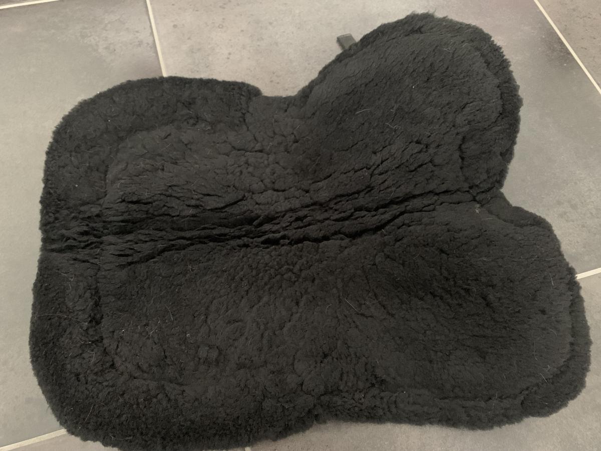 Amortisseur de la marque Fouganza, modèle Léna mouton noir. Bon état. Convient sur toutes selles (autant poney que cheval); taille unique. Possible de négocier le prix