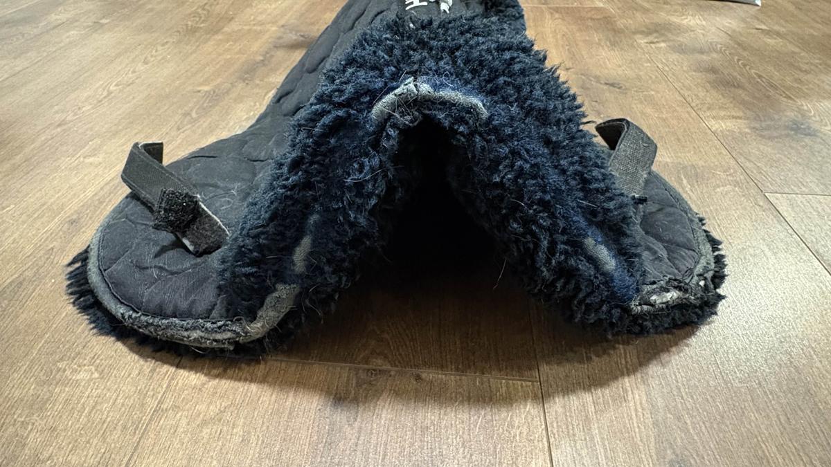 amortisseur Mouton bleu marine. Usé sur la partie avant.