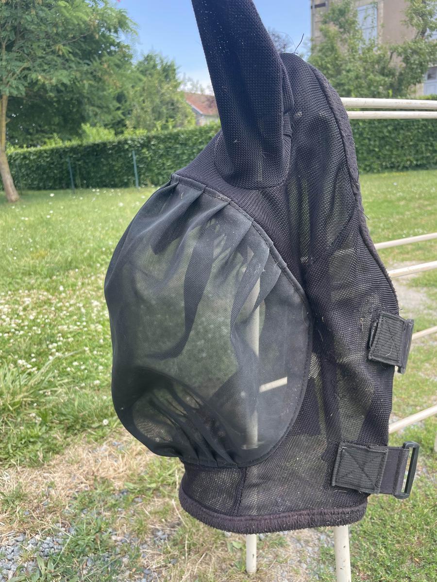 ⚡️A vendre⚡️Bonnet anti mouche Fouganza noir taille COB peu porté car trop petit mais attache à scratch avec sécurité très pratique
