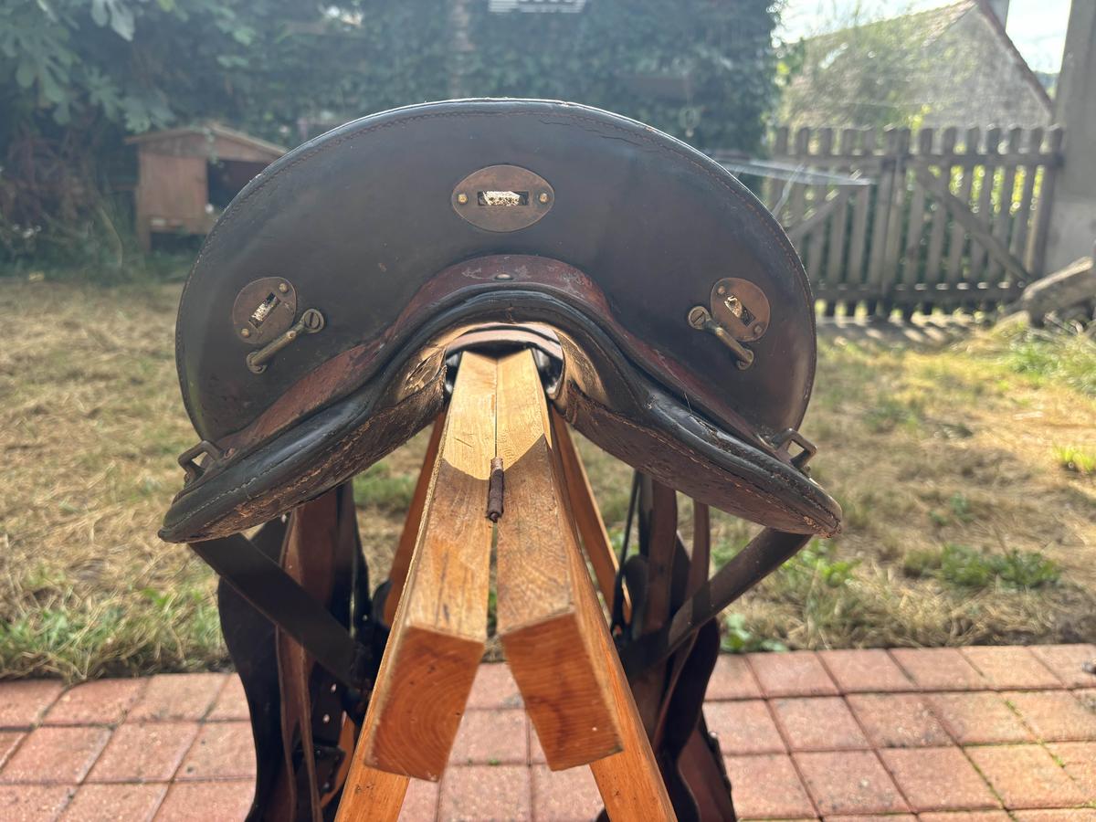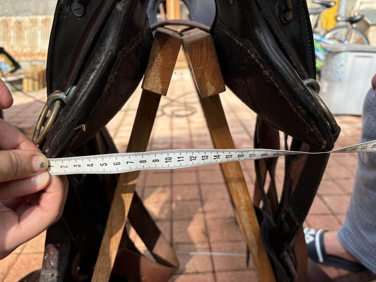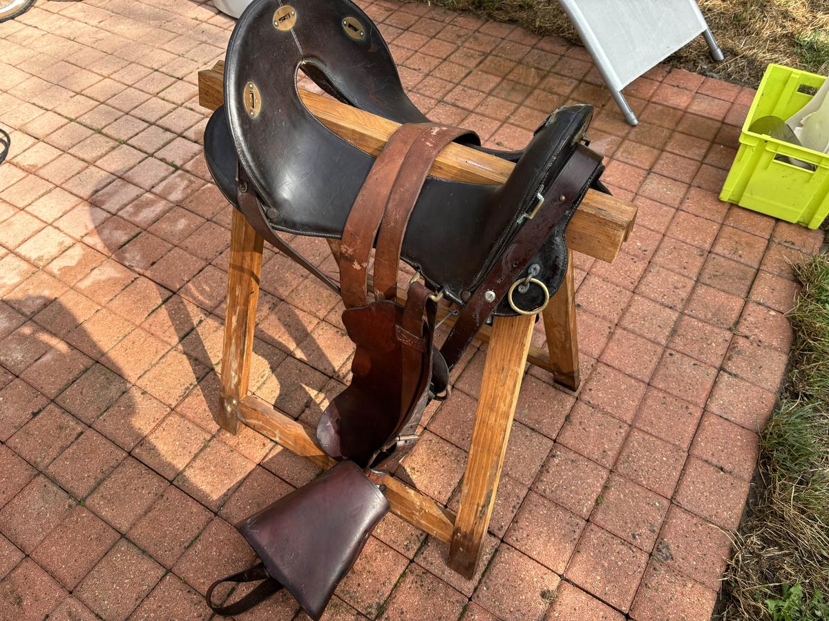 Bonjour, selle traditionnelle de randonnée maclellan. Le top du top. Toute équipée, la selle est complète. Elle a servi et le cuir a vécu mais toujours entretenue. Dessous de la selle usé par l’utilisation mais arçon bois en parfait état. Étriers bois d’origine sans défaut avec protections cuir (cuir souple car régulièrement entretenu - savon,graisse,huile ). Sangle à noeud cravatte (idéale pour la rando). Elle attend son prochain randonneur pour continuer de se promener. Vendue car ne va pas...