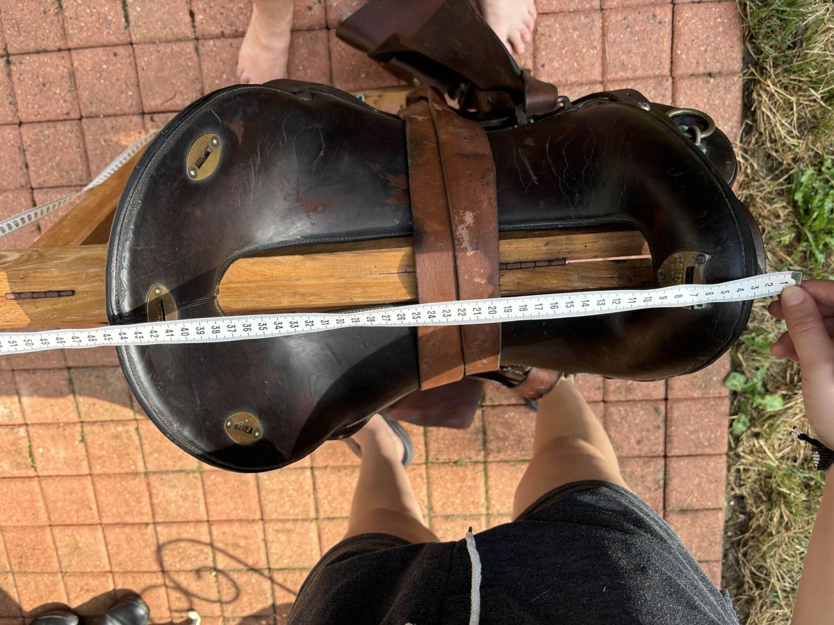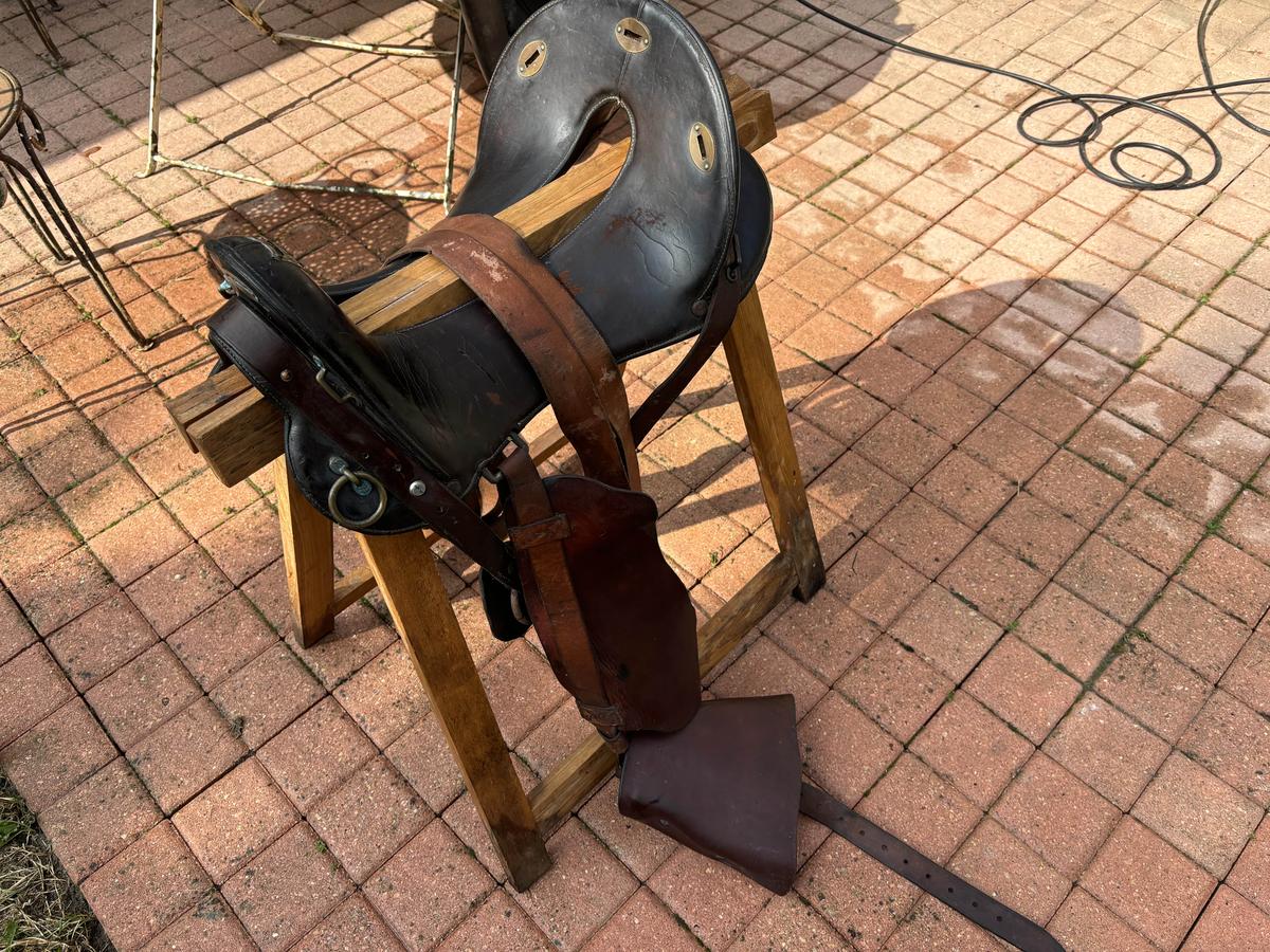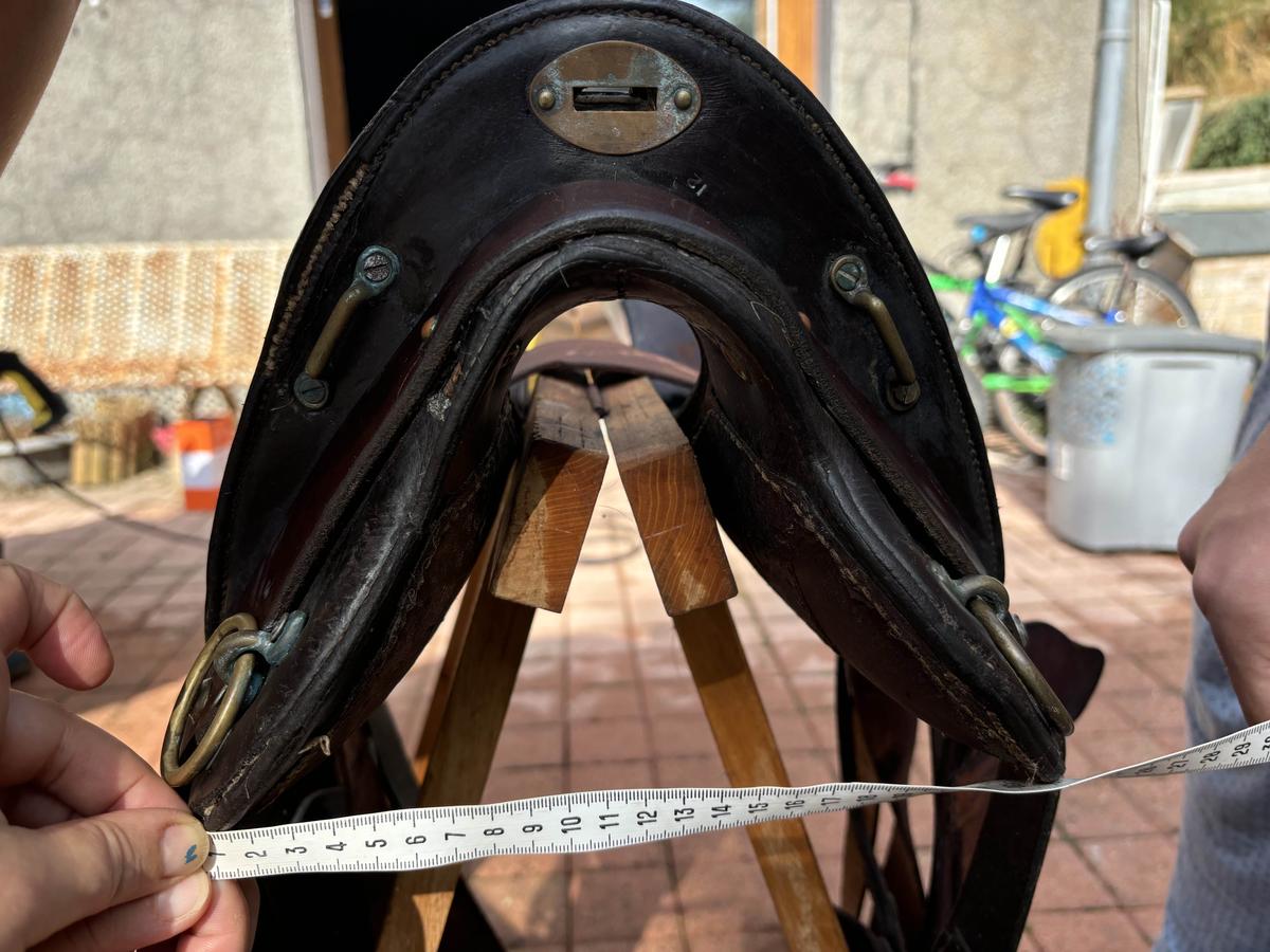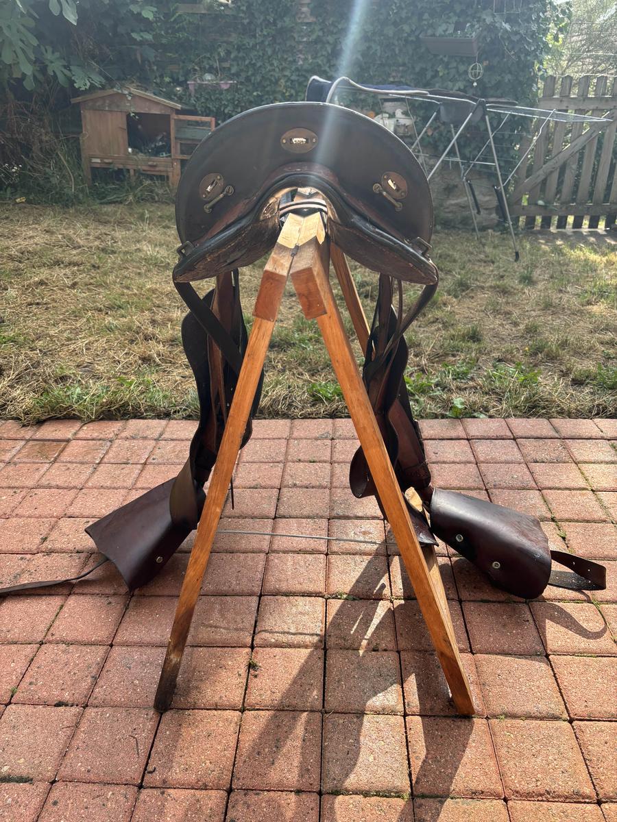 Bonjour, selle traditionnelle de randonnée maclellan. Le top du top. Toute équipée, la selle est complète. Elle a servi et le cuir a vécu mais toujours entretenue. Dessous de la selle usé par l’utilisation mais arçon bois en parfait état. Étriers bois d’origine sans défaut avec protections cuir (cuir souple car régulièrement entretenu - savon,graisse,huile ). Sangle à noeud cravatte (idéale pour la rando). Elle attend son prochain randonneur pour continuer de se promener. Vendue car ne va pas...