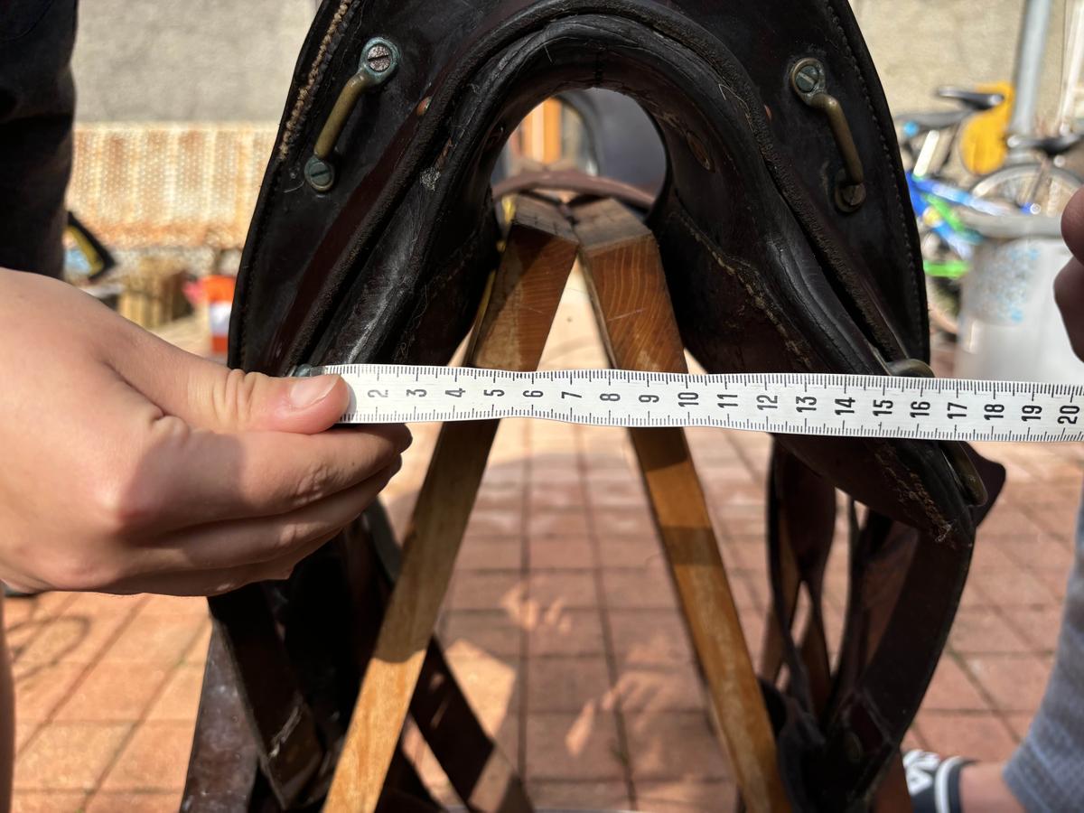 Bonjour, selle traditionnelle de randonnée maclellan. Le top du top. Toute équipée, la selle est complète. Elle a servi et le cuir a vécu mais toujours entretenue. Dessous de la selle usé par l’utilisation mais arçon bois en parfait état. Étriers bois d’origine sans défaut avec protections cuir (cuir souple car régulièrement entretenu - savon,graisse,huile ). Sangle à noeud cravatte (idéale pour la rando). Elle attend son prochain randonneur pour continuer de se promener. Vendue car ne va pas à mon nouveau compère. Prix négociable, lots possibles. Me faire proposition . Envoi possible mais attention à vérifier avant si ok taille pour votre cheval (mesures en photos). Autres photos dispos (message). Poids 7,5 kg