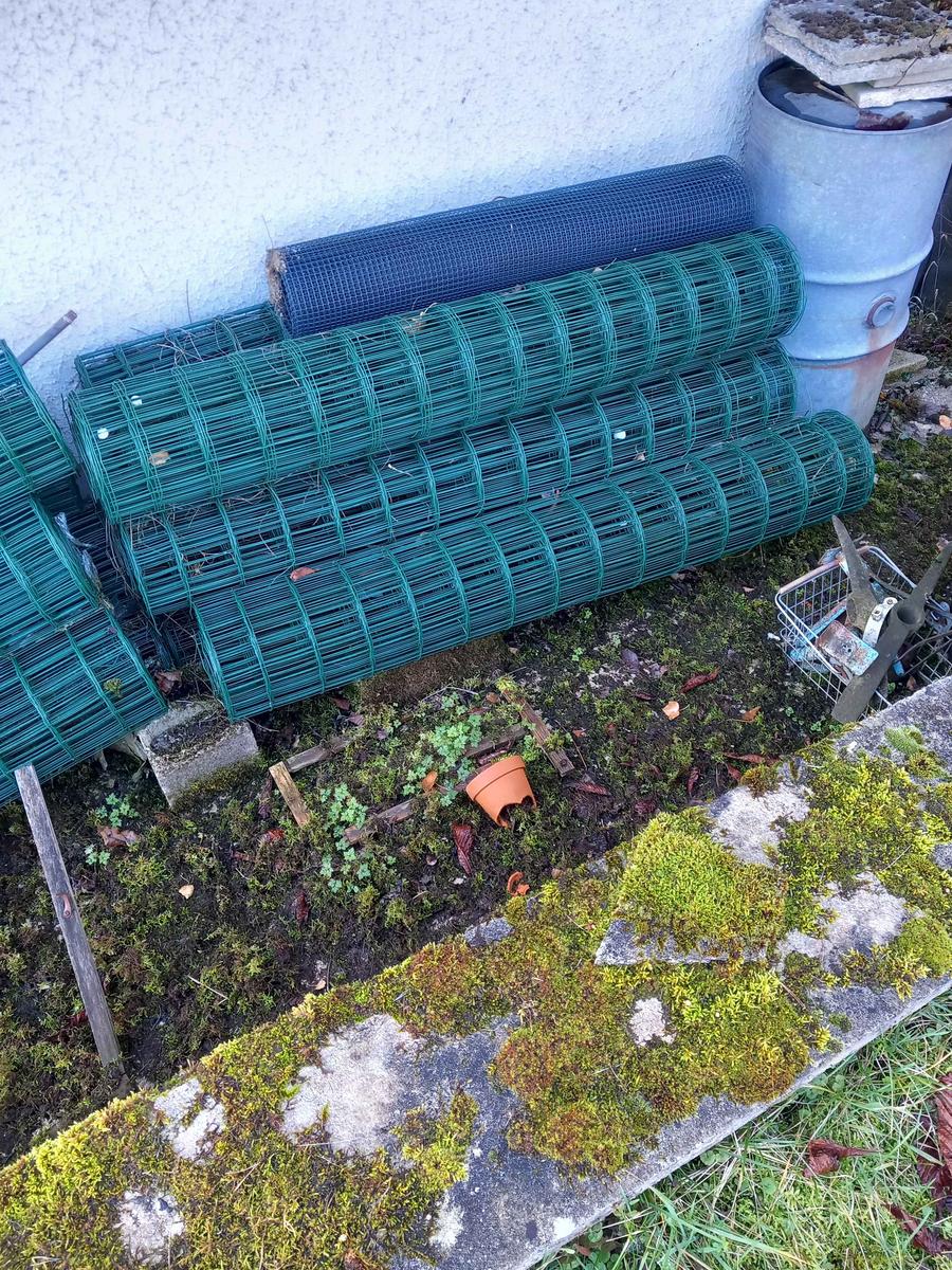 19 bobines de grillages , ils font 1m50 de haut et ils font de longueur 2m05 . il faut venir les chercher sur place . une bobine de grillage 20 euros. à l'époque je les avais 30 euros la bobine de grillage .