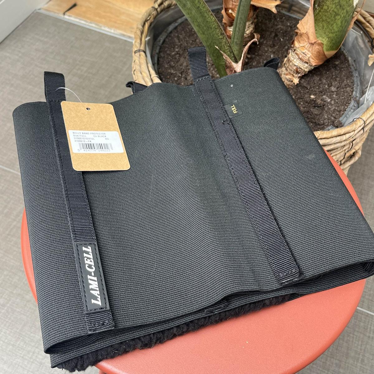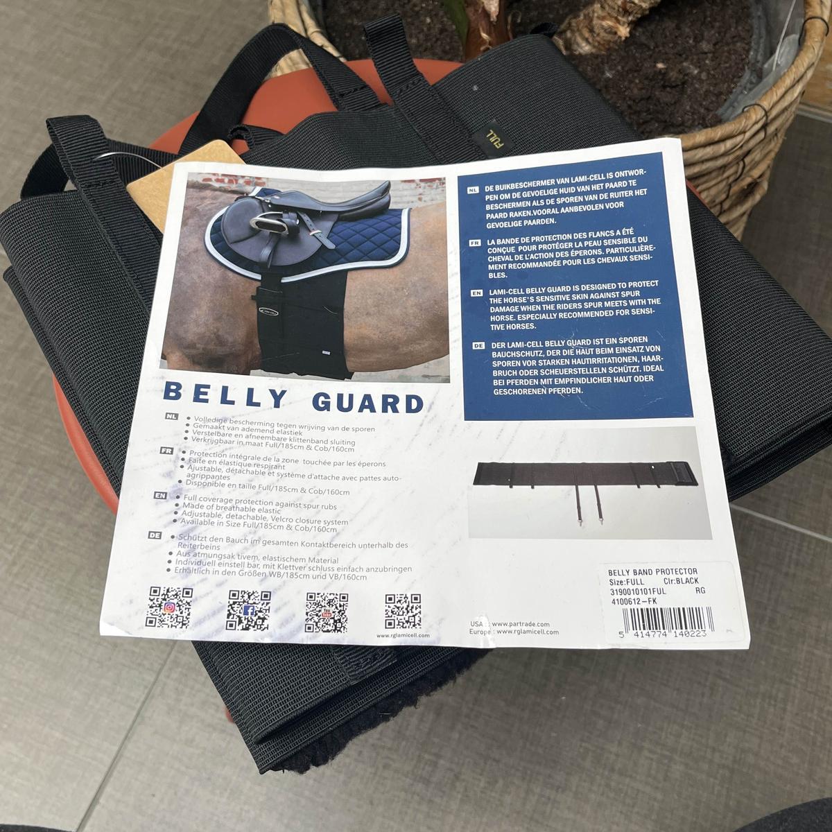 Bande de respect. Marque LAMICELL. Pour protéger les chevaux à la peau sensible (usure du poil), et les flancs des traces de frottement du bas de jambe et/ou des éperons. Coloris noir. Matière élastique respirante. Doublure en mouton synthétique au niveau de l’attache ventrale. Système d’attaches à la sangle. Taille Full (185cm). NEUF. Jamais utilisé, juste sorti de son emballage plastique.