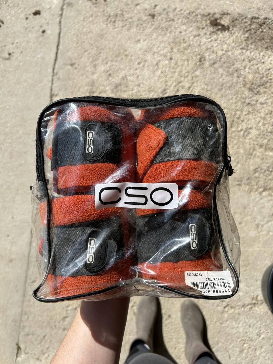 Marque : CSO Prix neuf : 24€ l'une des bandes e été déchirée puis recousue. La réparation tient très bien, elles ont été utilisées plusieurs fois depuis.