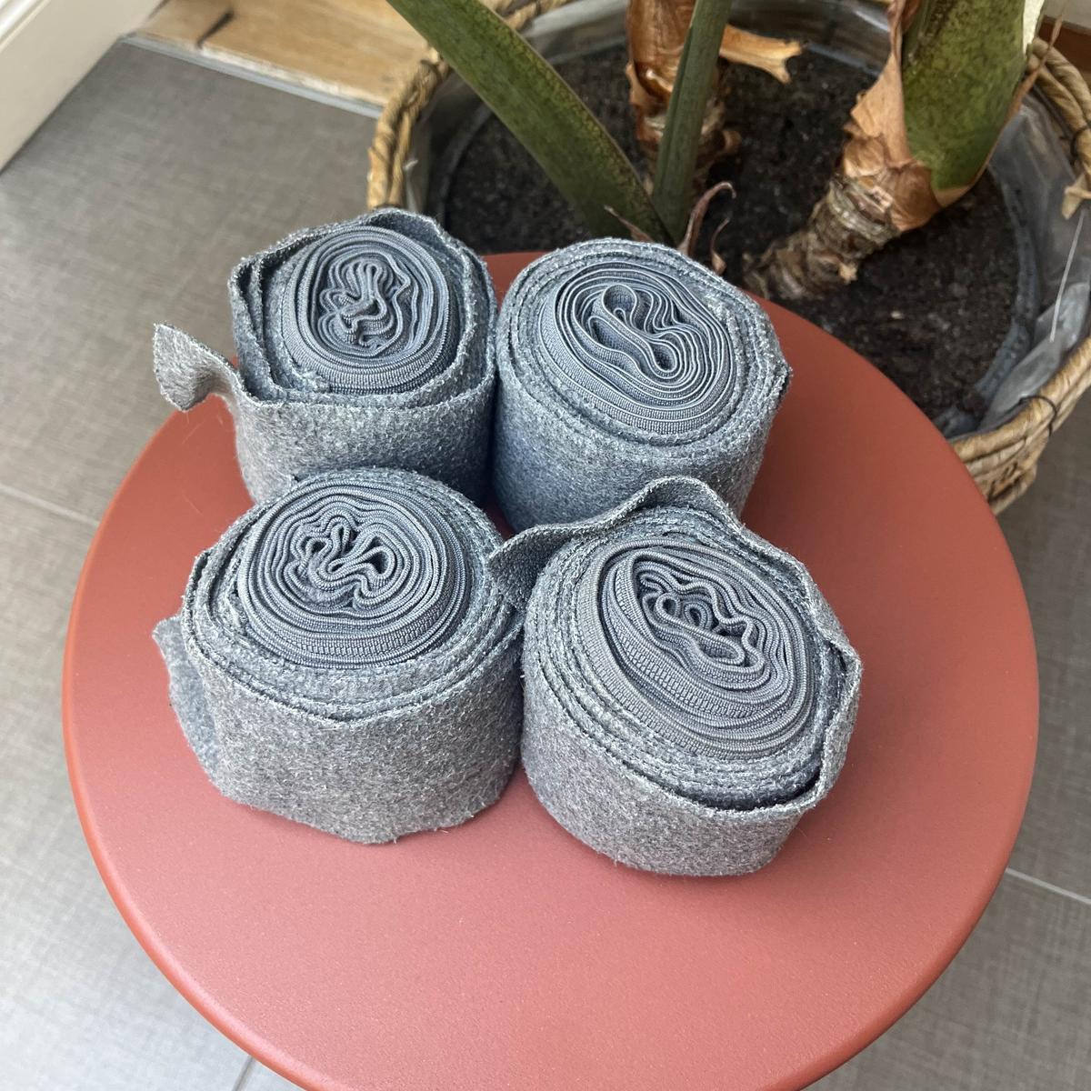 LOT 4 bandes de polo. Marque EQULINE. Taille cheval. Coloris gris. Bon état, élastique légèrement distendu par endroits (cf. photo à l’appui) mais encore parfaitement utilisables.
