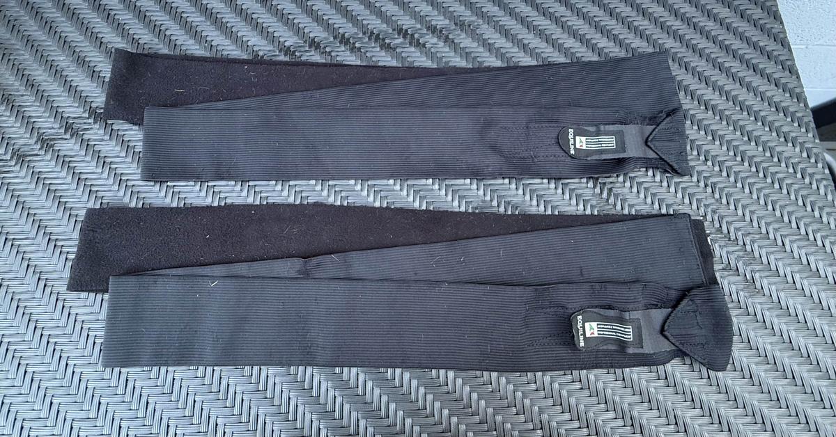 Set de 2 bandes de travail noires Equiline, en bon état d’occasion, elles sont juste un petit peu abîmées au début (voir photos), taille unique
