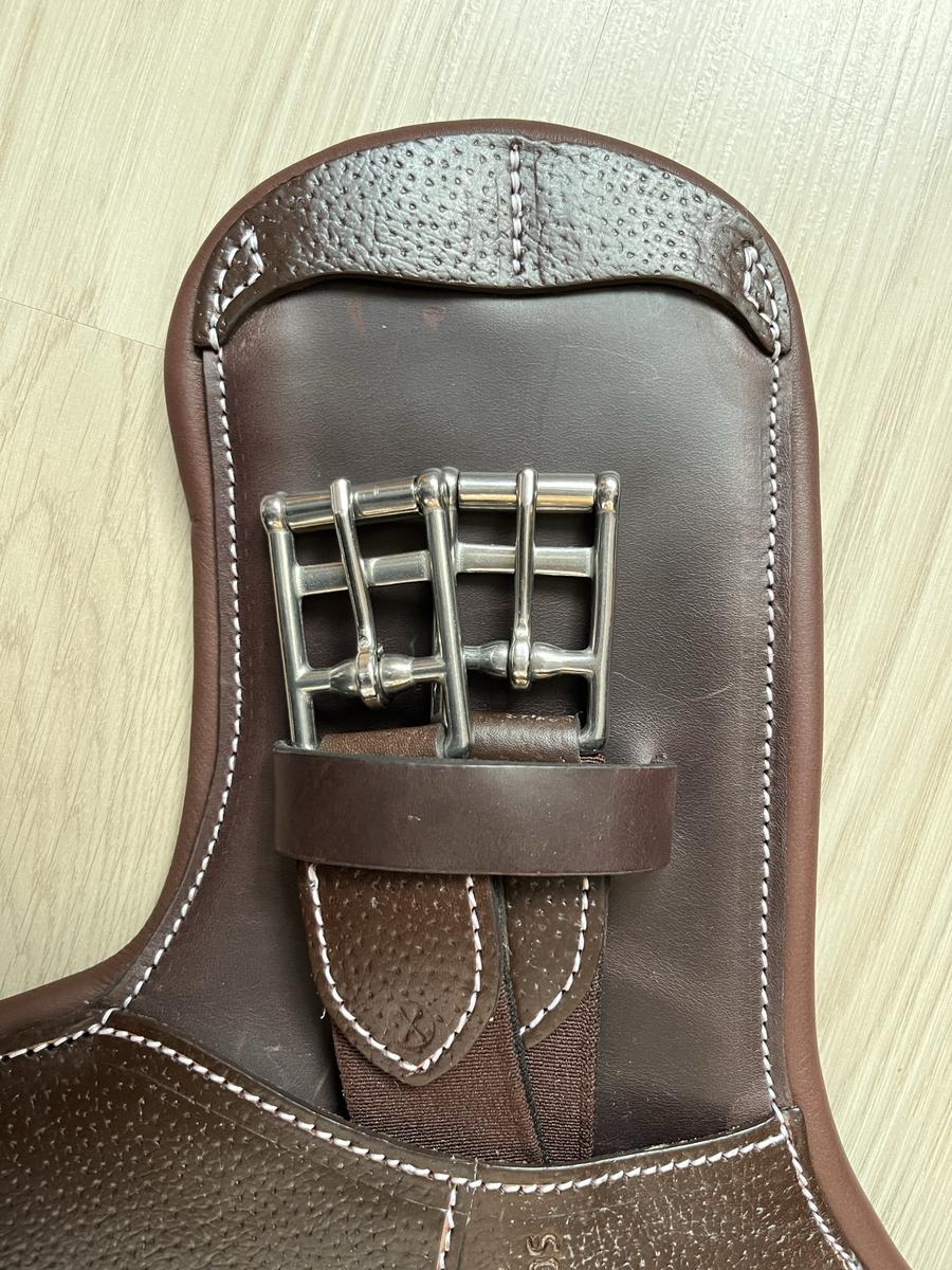Je vends cette sangle bavette courte de marque Forestier, taille 50 cm et couleur châtaigne.