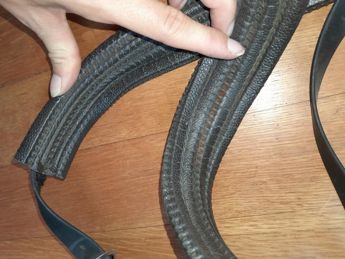 Muserolle large, confortable. Le rembourrage est légèrement abîmé comme on voit sur la photo.