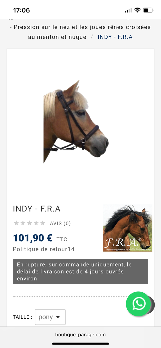 Article neuf, jamais utilisé il est trop petit pour ma jument.