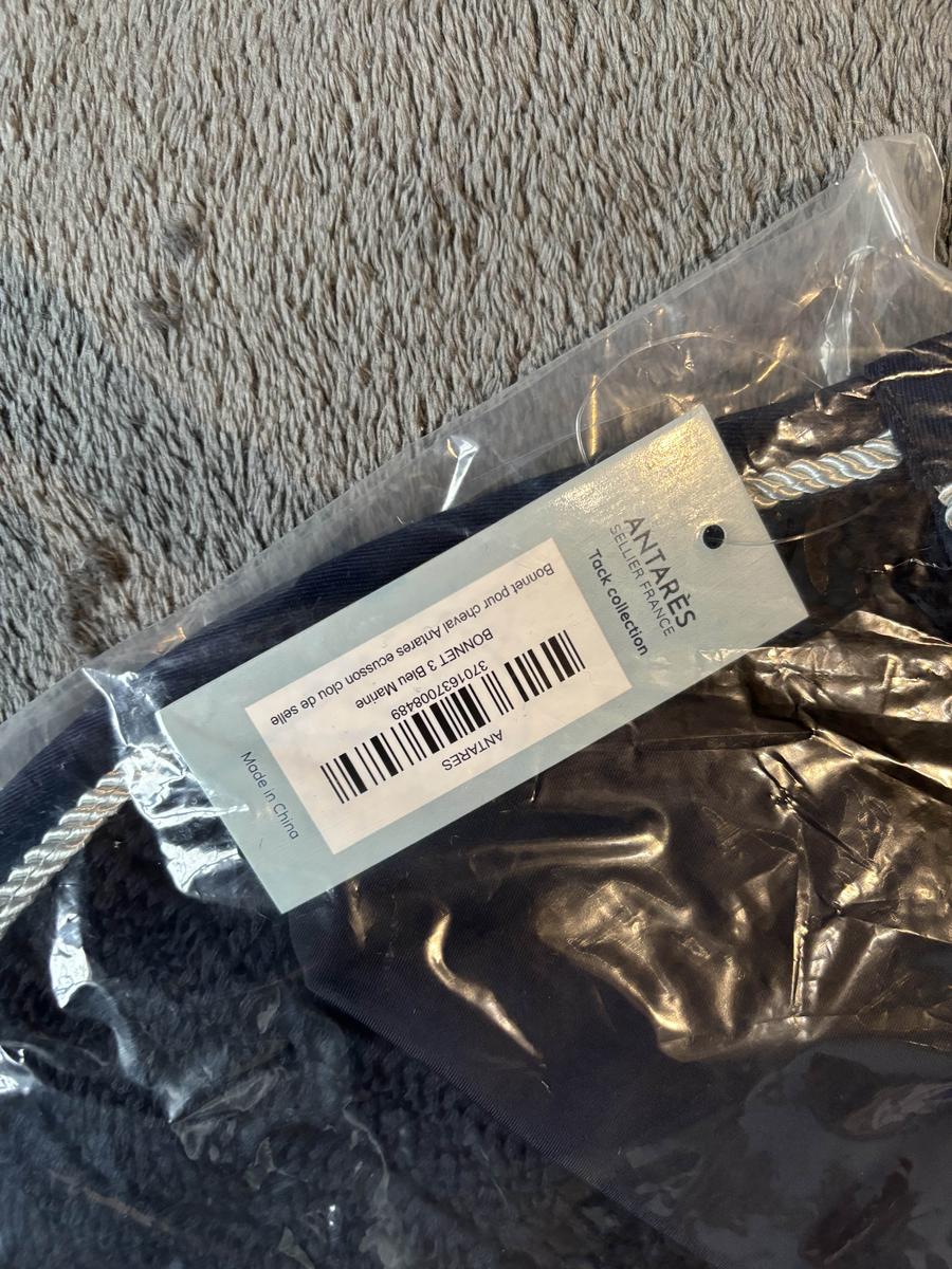 Bonnet Antares bleu marine et liseré argenté, neuf avec étiquette, encore dans l’emballage, jamais ouvert.