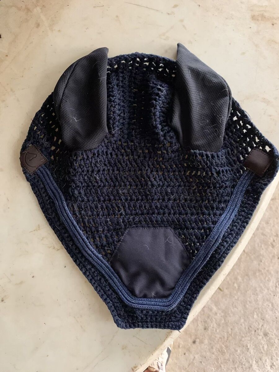 bonnet court bleu marine équithème liseré brillant, taille cheval