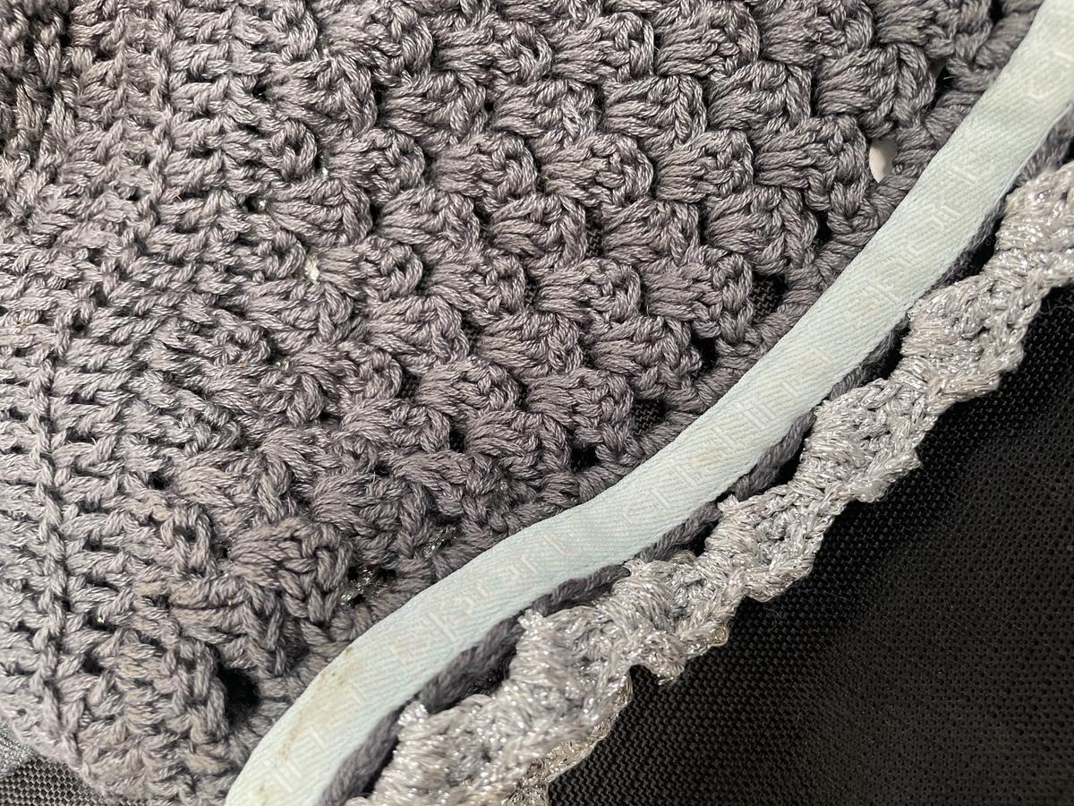 Bonnet Cristina Sport de couleur gris avec une bordure argenté. Une bande bleu ciel avec la marque écris dessus