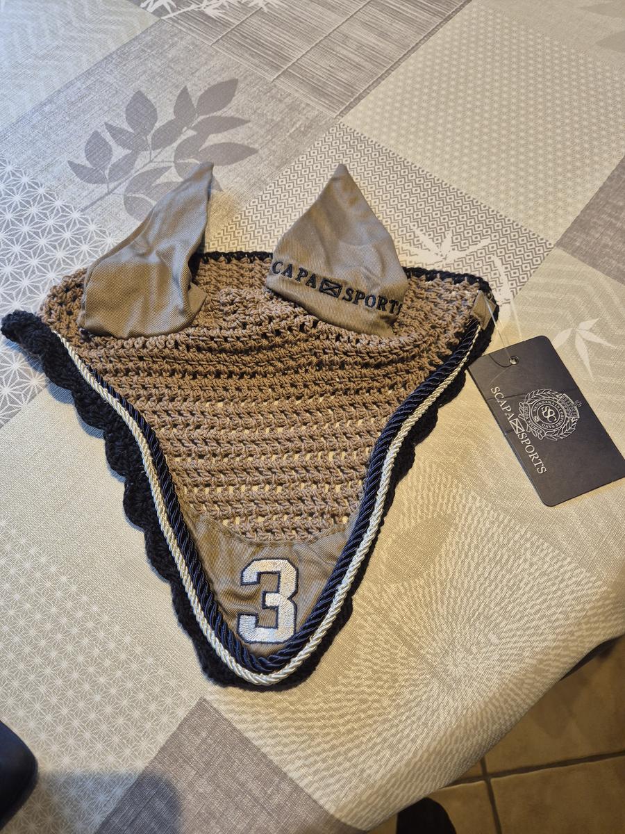 Nouveau bonnet scapa sport brun avec lisière bleu.