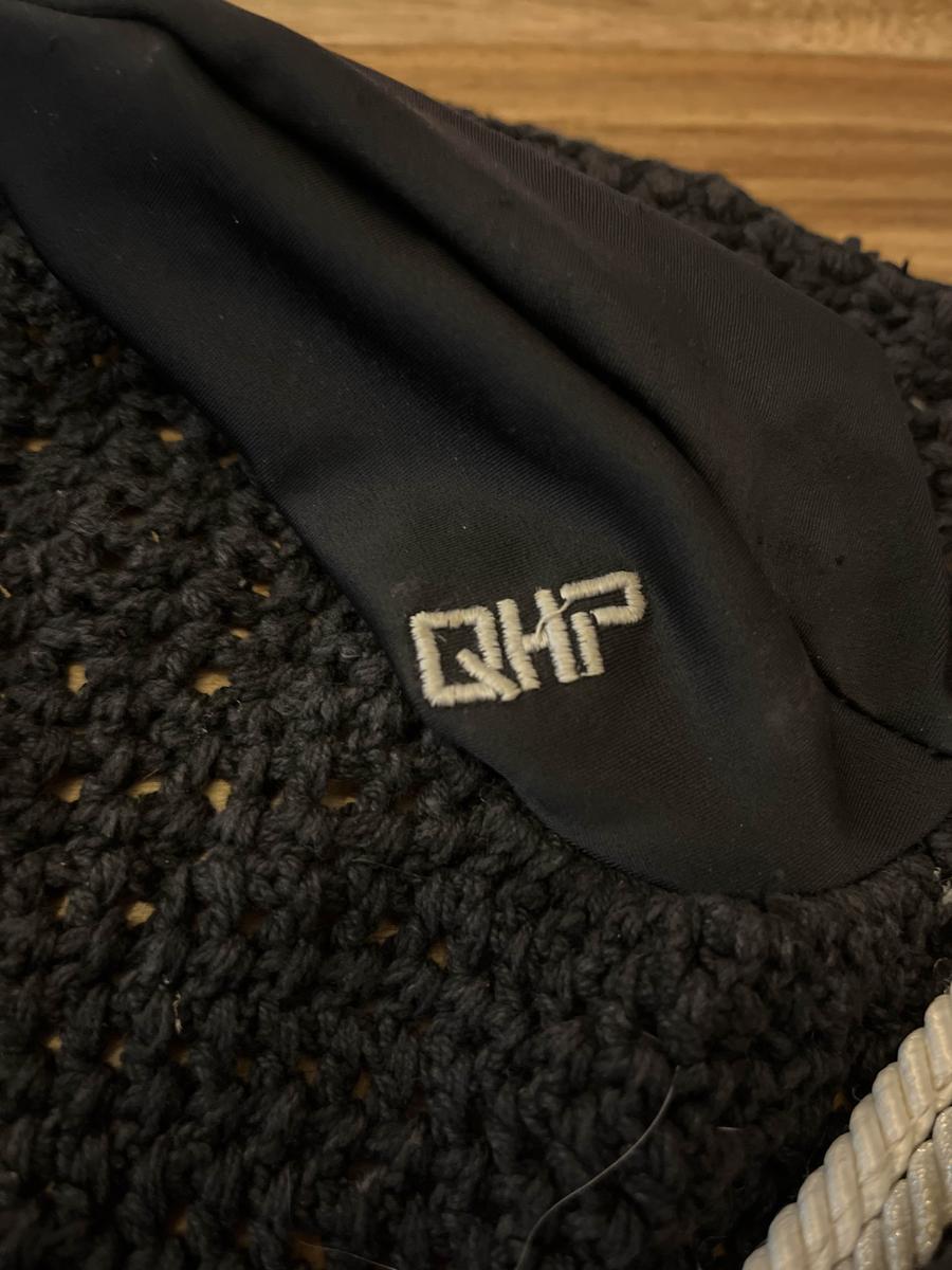 bonnet qhp noir cour taille cheval avec 2 liserés un blanc et un argenté assez pailletée