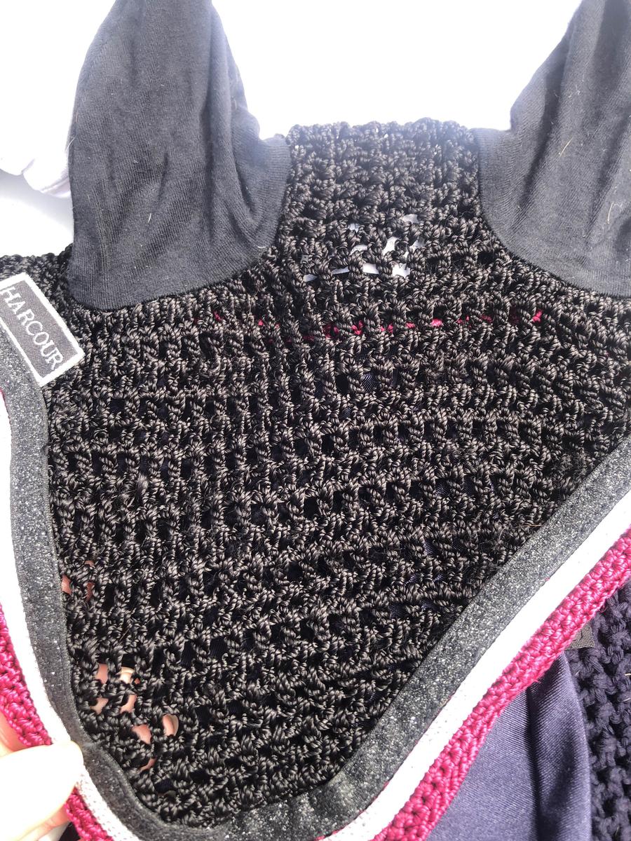 Bonnet HARCOUR liseré bordeaux et pailleté .