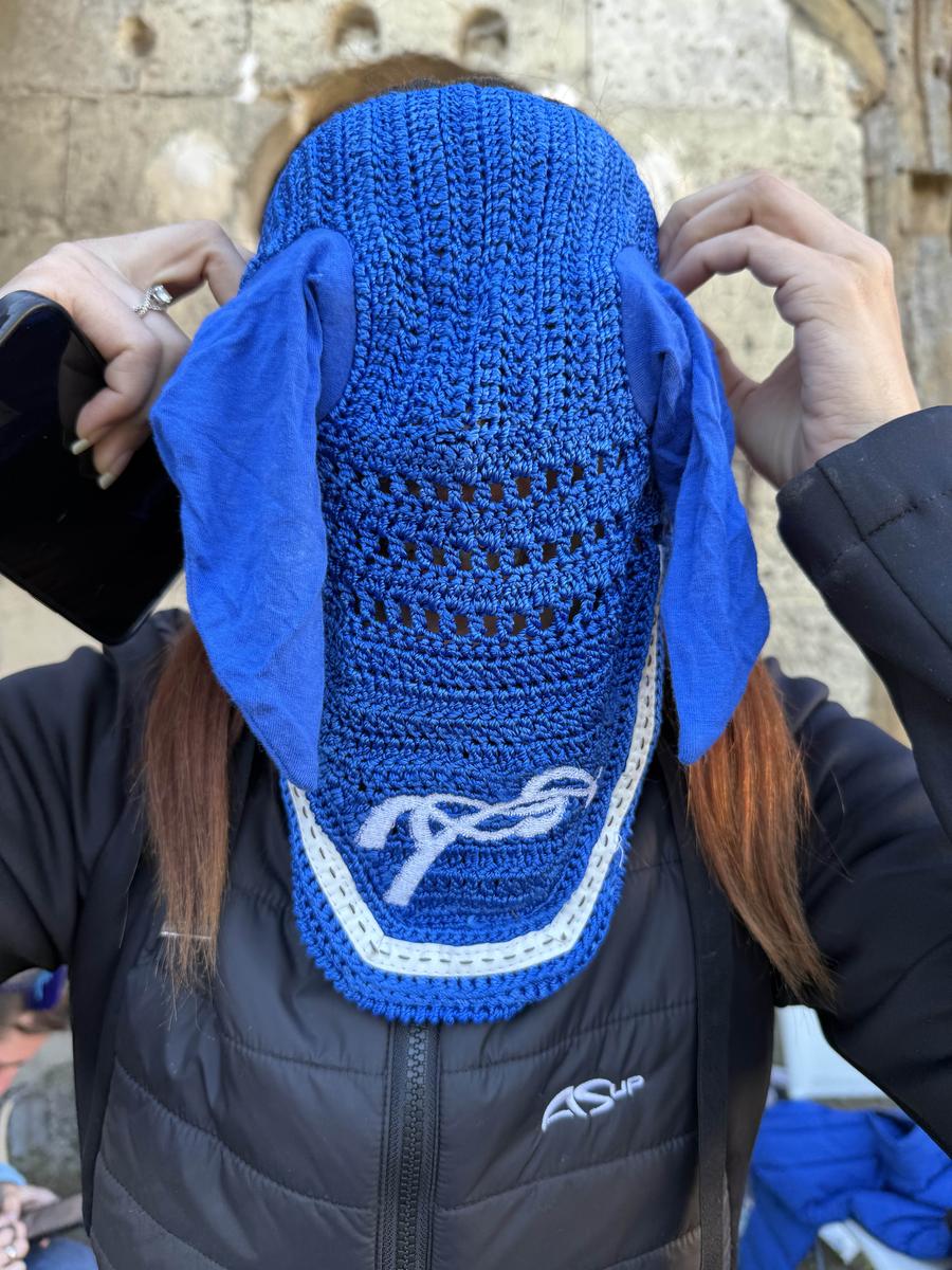bonnet en très bon état bleu électrique taille cheval