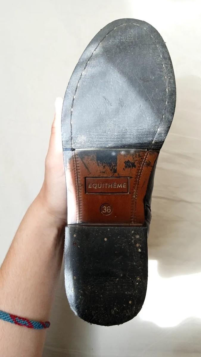 Je m'en sépare car elles ne sont plus à ma taille mais je les utilisais très occasionnellement, j'ai du les mettre une vingtaine de fois, le cuir est donc déjà un peu fait et il y a quelques accros visibles sur les photos.