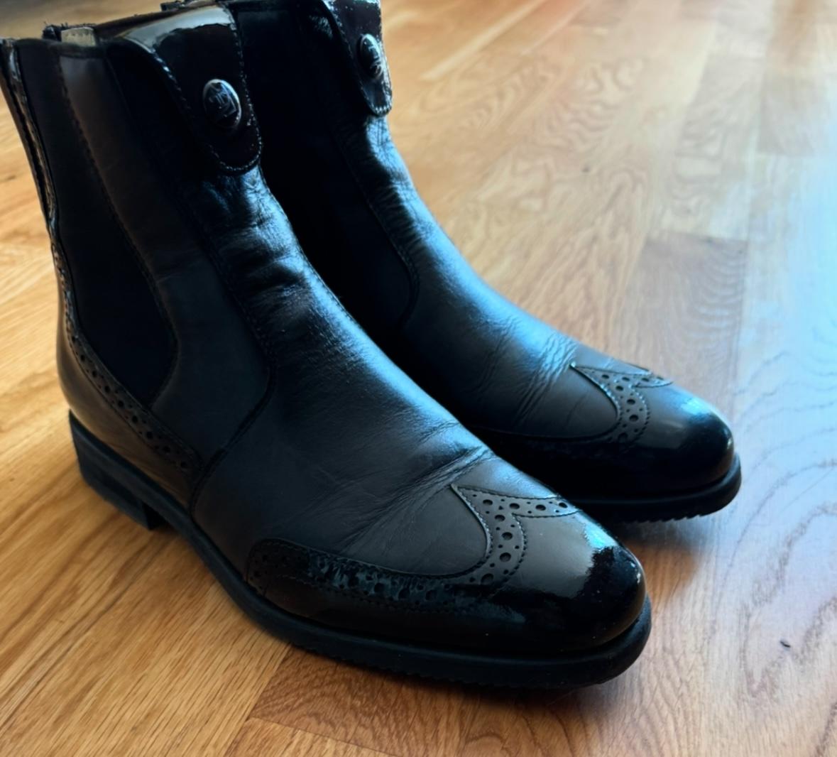 Les bottes de paddock Tucci Time Marylin sont dotées d'une double couture élastique pour faciliter l'entrée et d'une fermeture à glissière pour un enfilage rapide, ce qui garantit un confort maximal et favorise une position correcte du talon vers le bas. La semelle légère et le profil agressif favorisent une adhérence sûre et confortable à l'étrier. Le concept d'accrochage de la demi-chapelle est le système d'attache le plus innovant jamais conçu et garantit une fermeture sûre. Guide élastique classique également disponible sur demande.