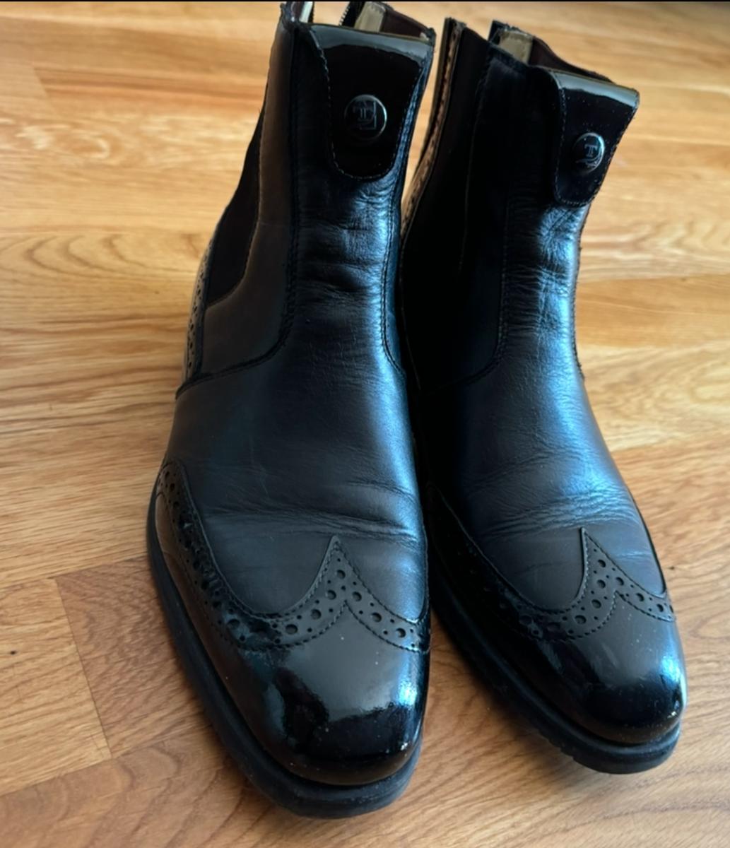 Les bottes de paddock Tucci Time Marylin sont dotées d'une double couture élastique pour faciliter l'entrée et d'une fermeture à glissière pour un enfilage rapide, ce qui garantit un confort maximal et favorise une position correcte du talon vers le bas. La semelle légère et le profil agressif favorisent une adhérence sûre et confortable à l'étrier. Le concept d'accrochage de la demi-chapelle est le système d'attache le plus innovant jamais conçu et garantit une fermeture sûre. Guide élastique classique également disponible sur demande.