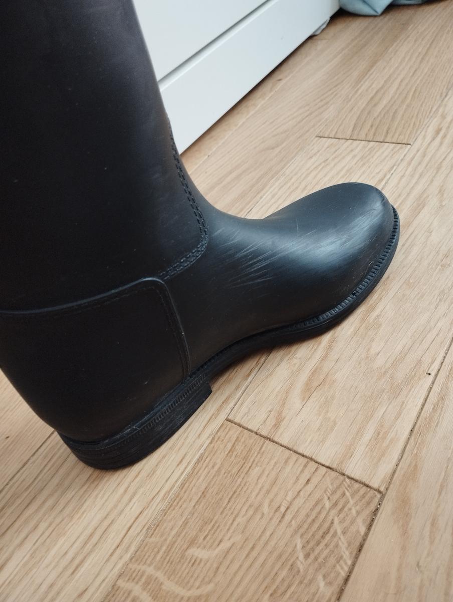 Bottes équitation a vendre !! Bottes débutant Decathlon en caoutchouc taille 39(convient aussi aux 40) noir en très bon état (mis a part quelques rayures dues au frottement avec les cuirs de la selle) sera lavé avant envoi, contactez moi pour plus de renseignements !!